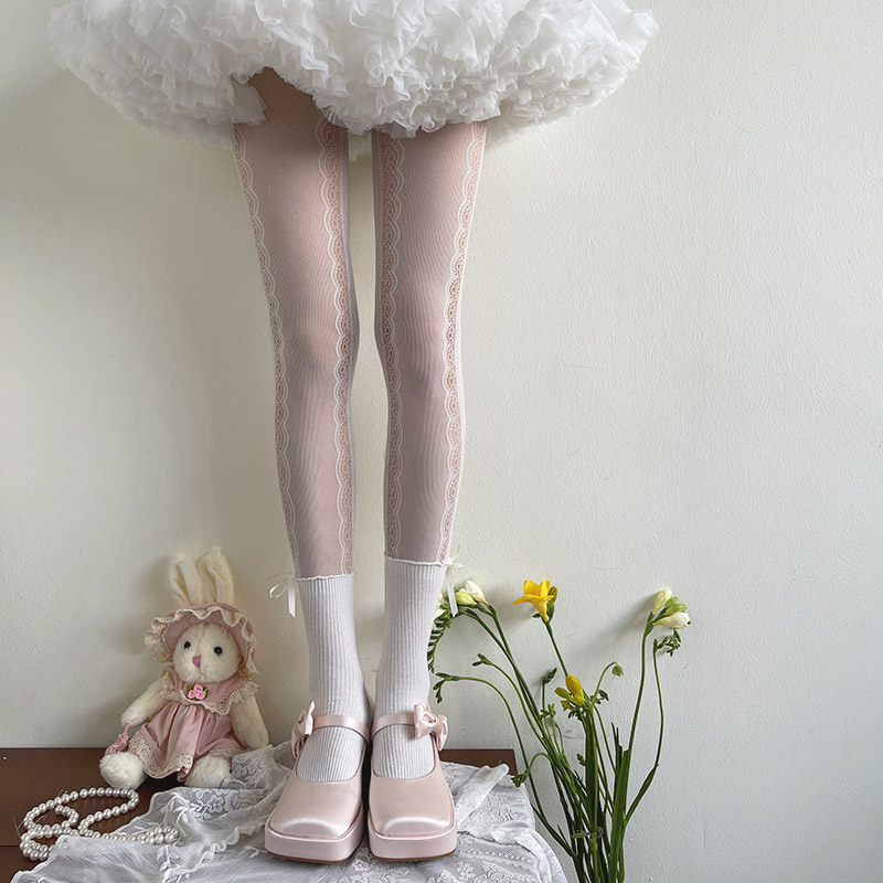 袜贵人新品蕾丝拼接假高筒少女洛丽塔唯美性感软妹少女美腿丝袜女