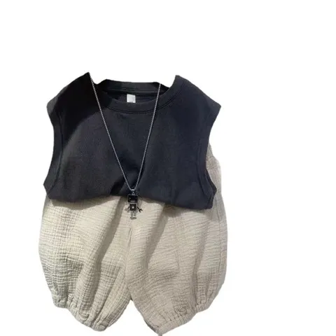 潮新款2023无袖夏季儿童七分裤背心套装宝宝男童童装两件套中小童