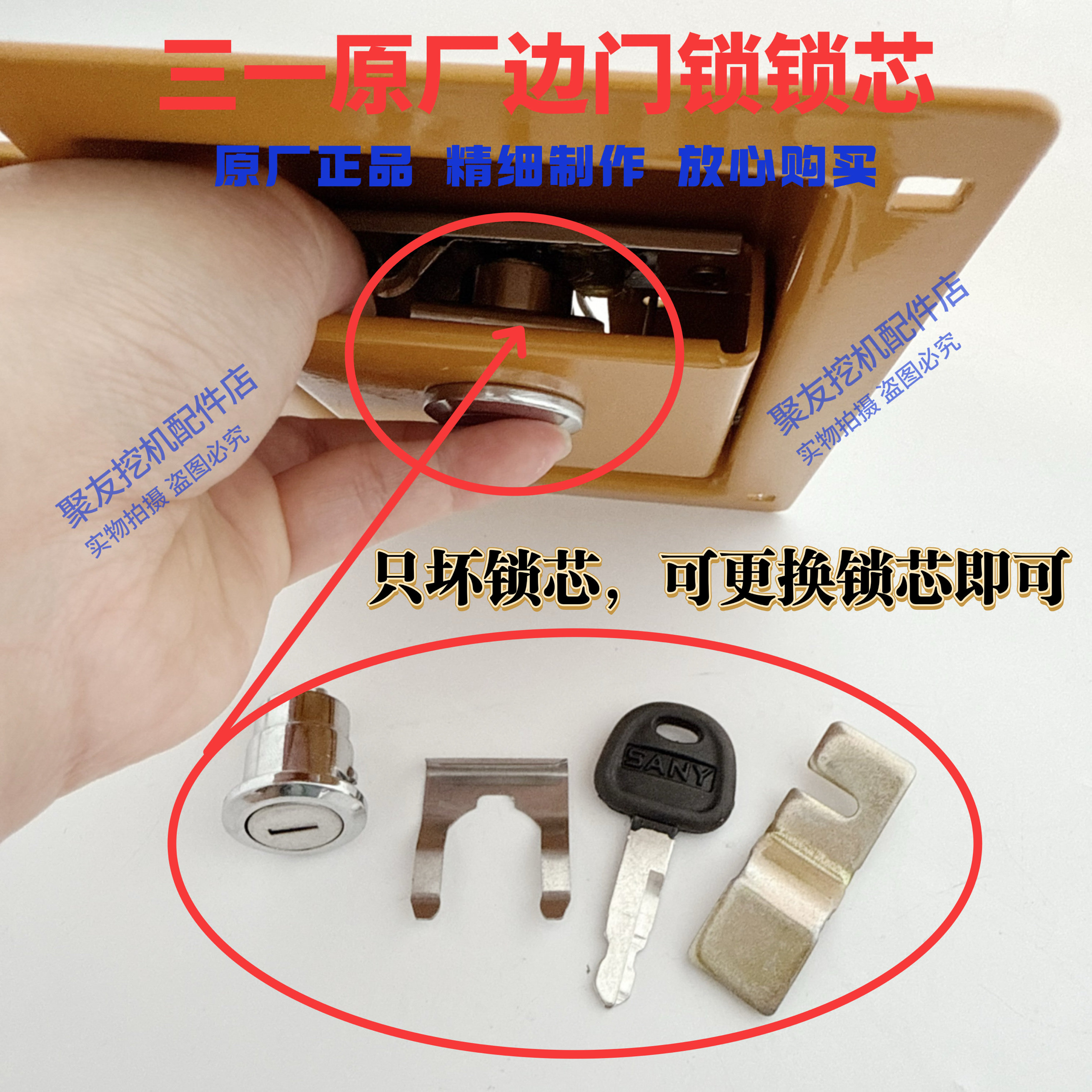 三一挖掘机配件75 135 215 235 365原装边门锁芯总成原厂