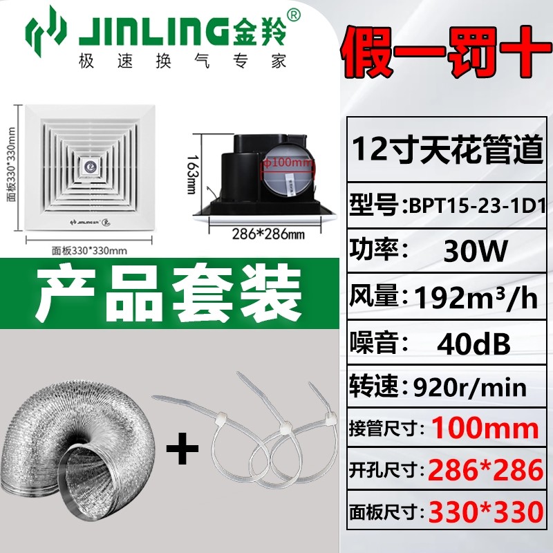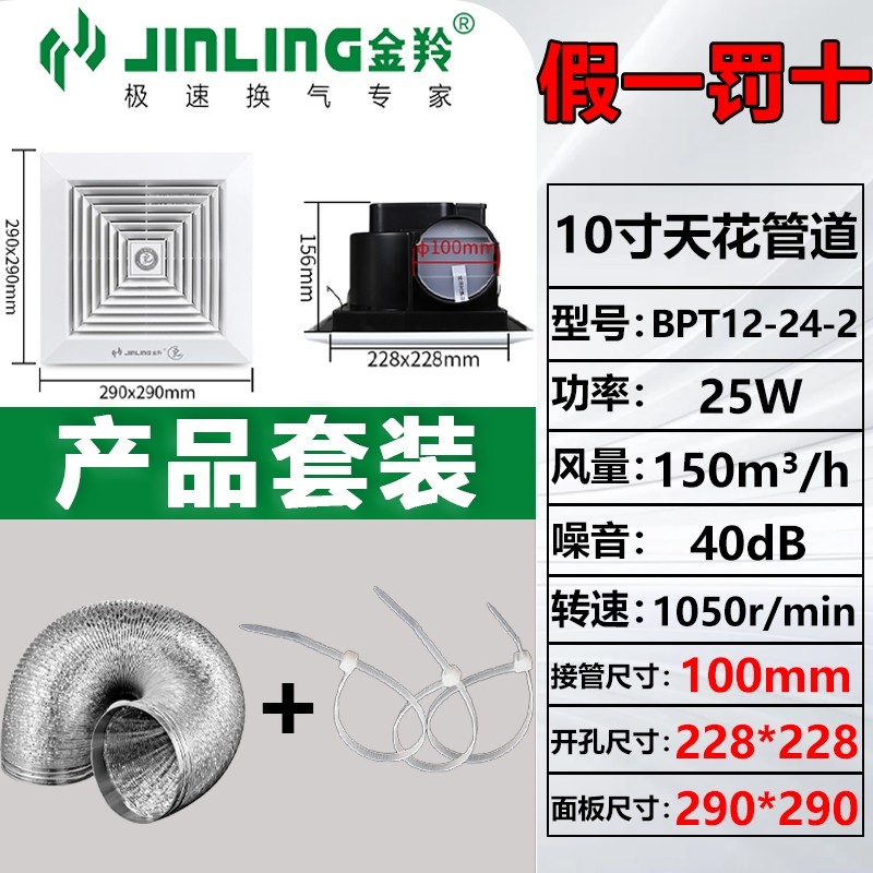 金羚天花排气扇卫生间天花板管道风扇排气扇10寸吸顶吊顶抽风机排