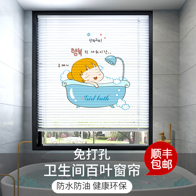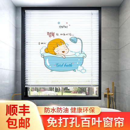 免打孔卫生间百叶窗窗帘厕所浴室防水升降遮光窗户遮挡卷帘百叶帘