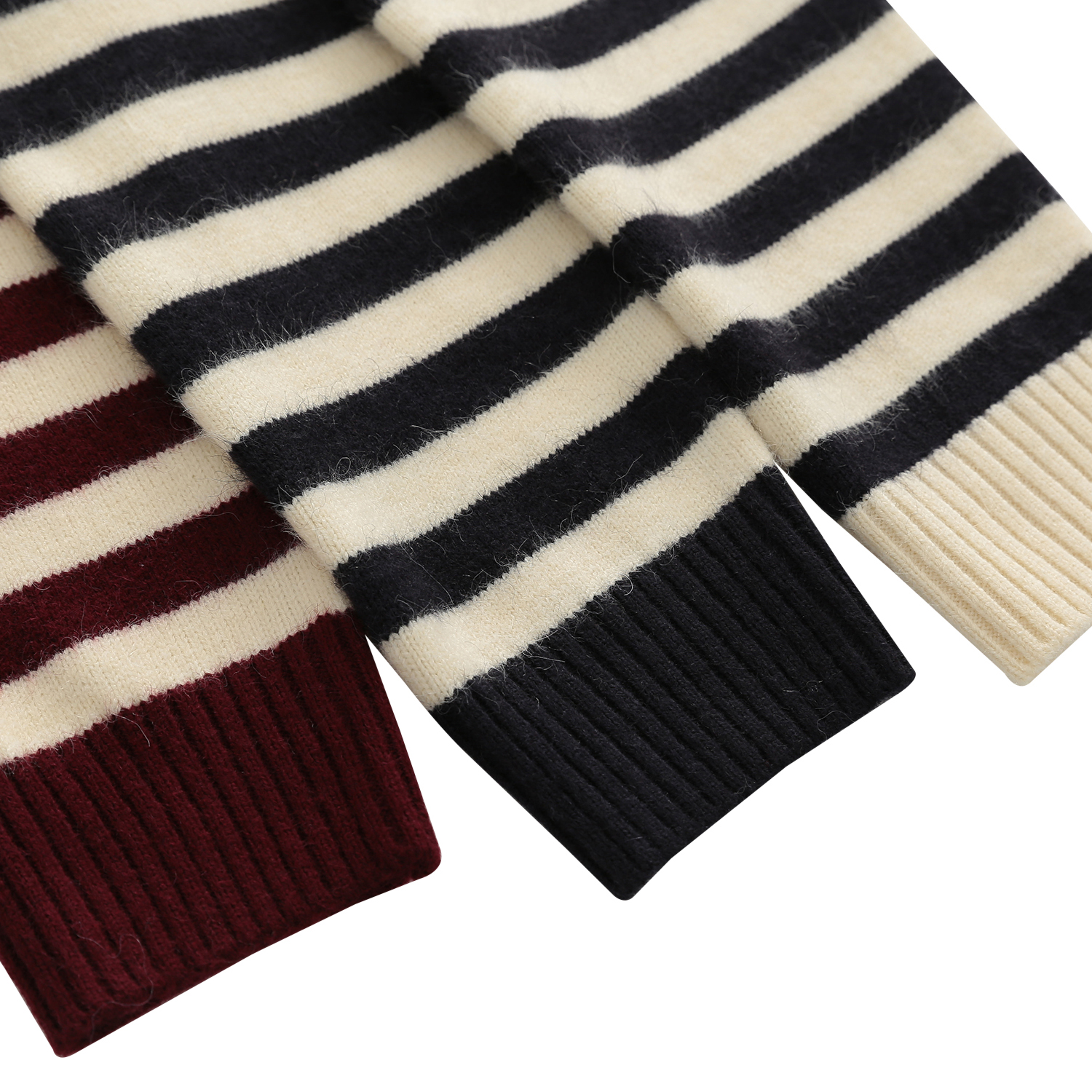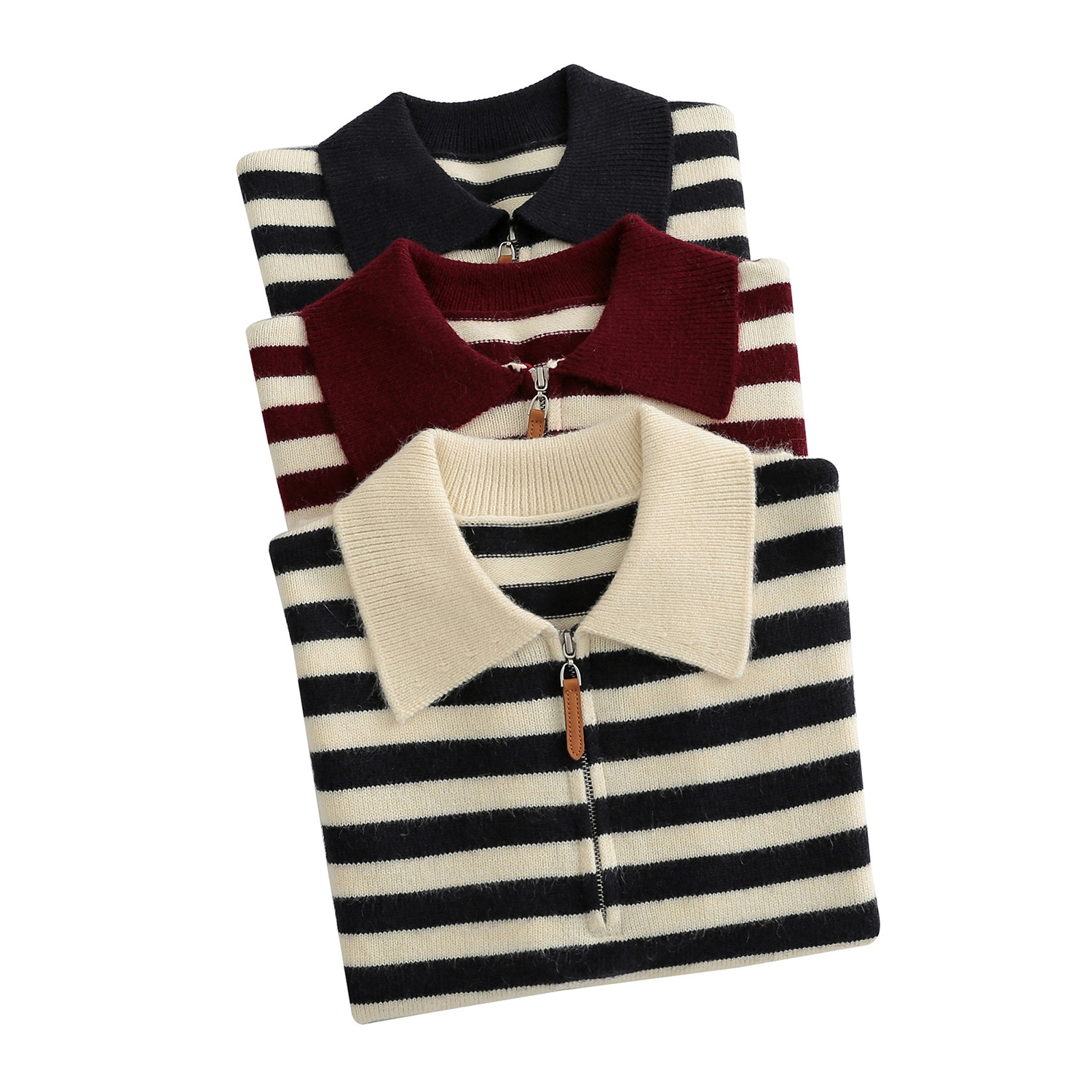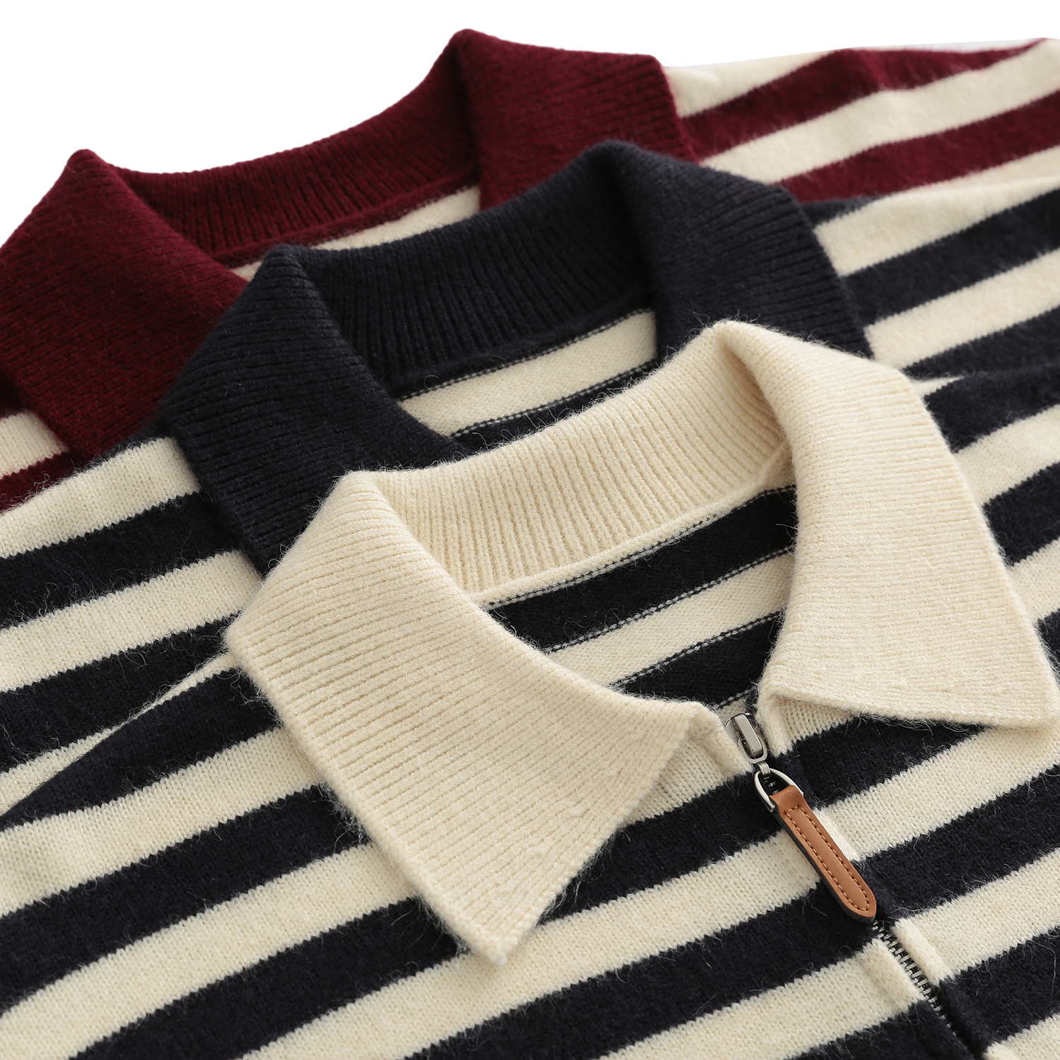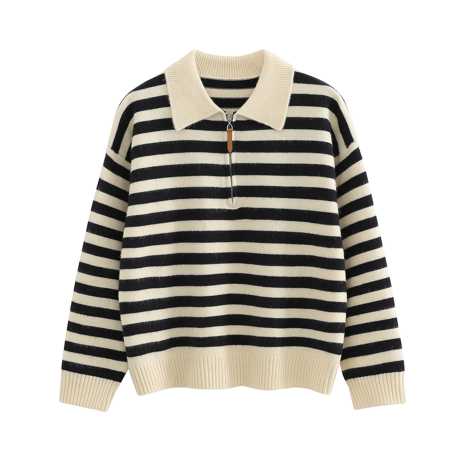 11.11 韩系极简风皮扣拉链翻领条纹套头毛衣休闲宽松慵懒毛衣女