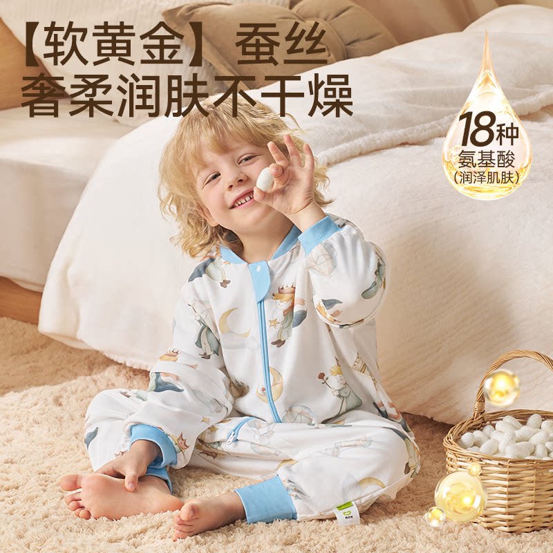 棉奇熊婴儿睡袋春夏薄款宝宝蚕丝恒温儿童分腿夏季防踢被四季通用