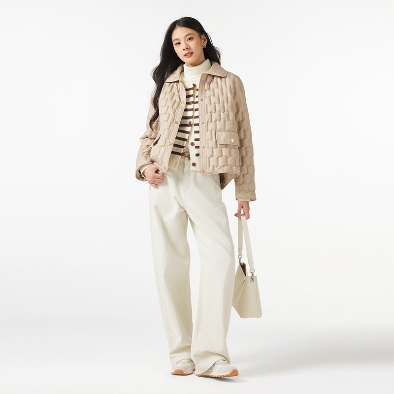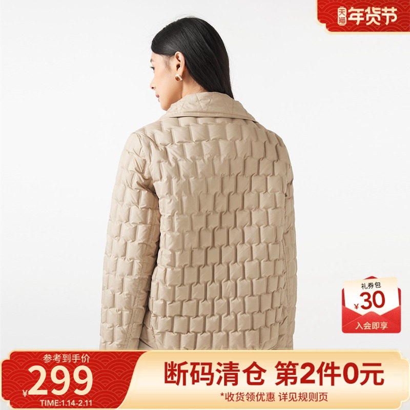 热风2024年冬季新款女士翻领压胶轻薄羽绒服短款舒适百搭鸭绒外套