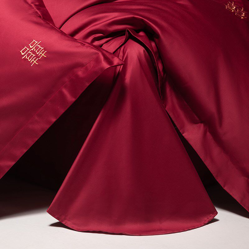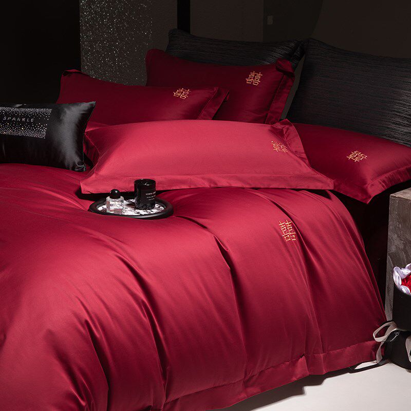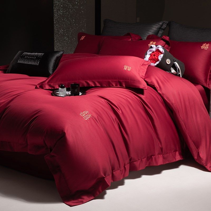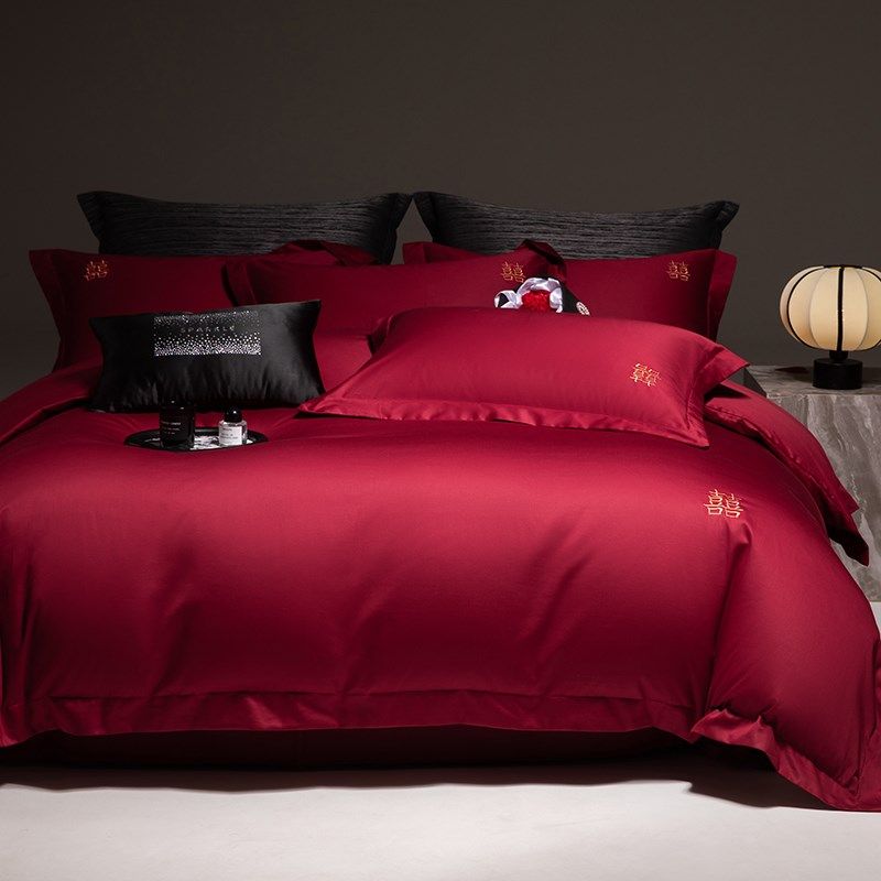 新中式喜字婚庆四件套纯棉全v棉酒红色被套结婚用床单陪嫁床上用