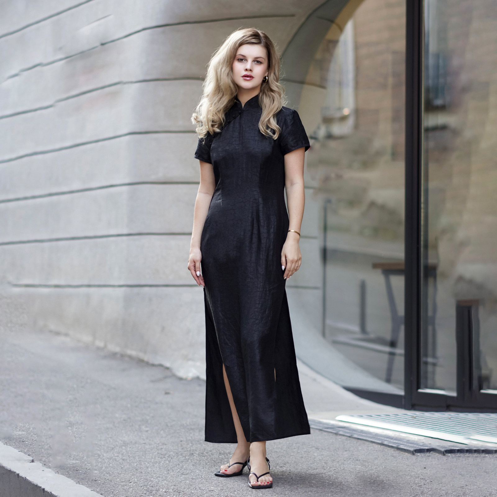 歌莉娅香云纱国风旗袍真丝连衣裙