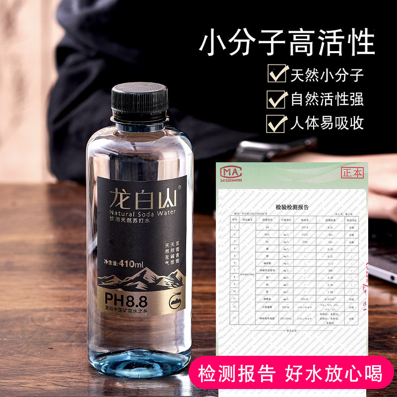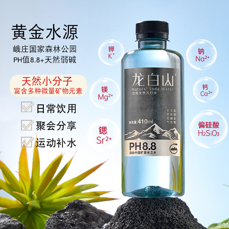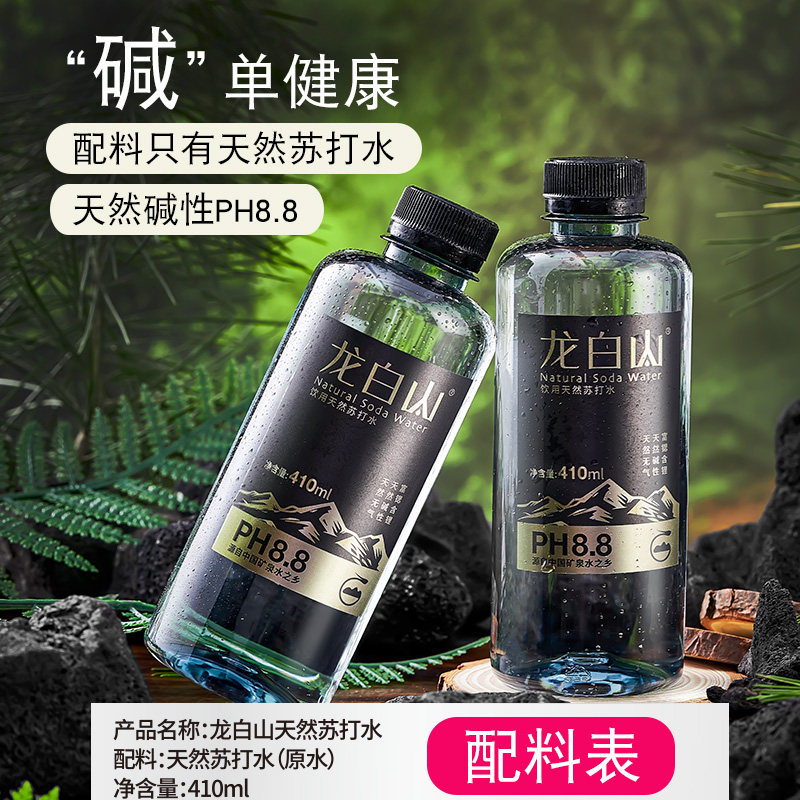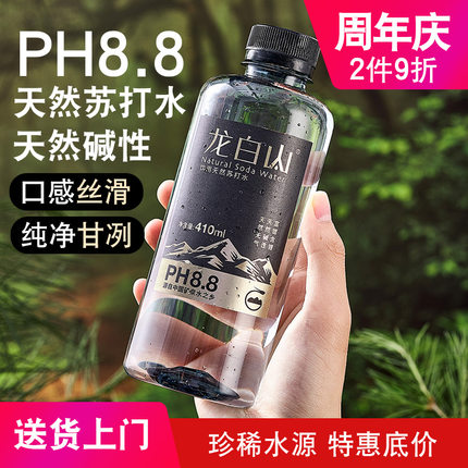龙白山天然苏打水410ml饮用水天然弱碱性水PH8.8整箱24瓶非矿泉水