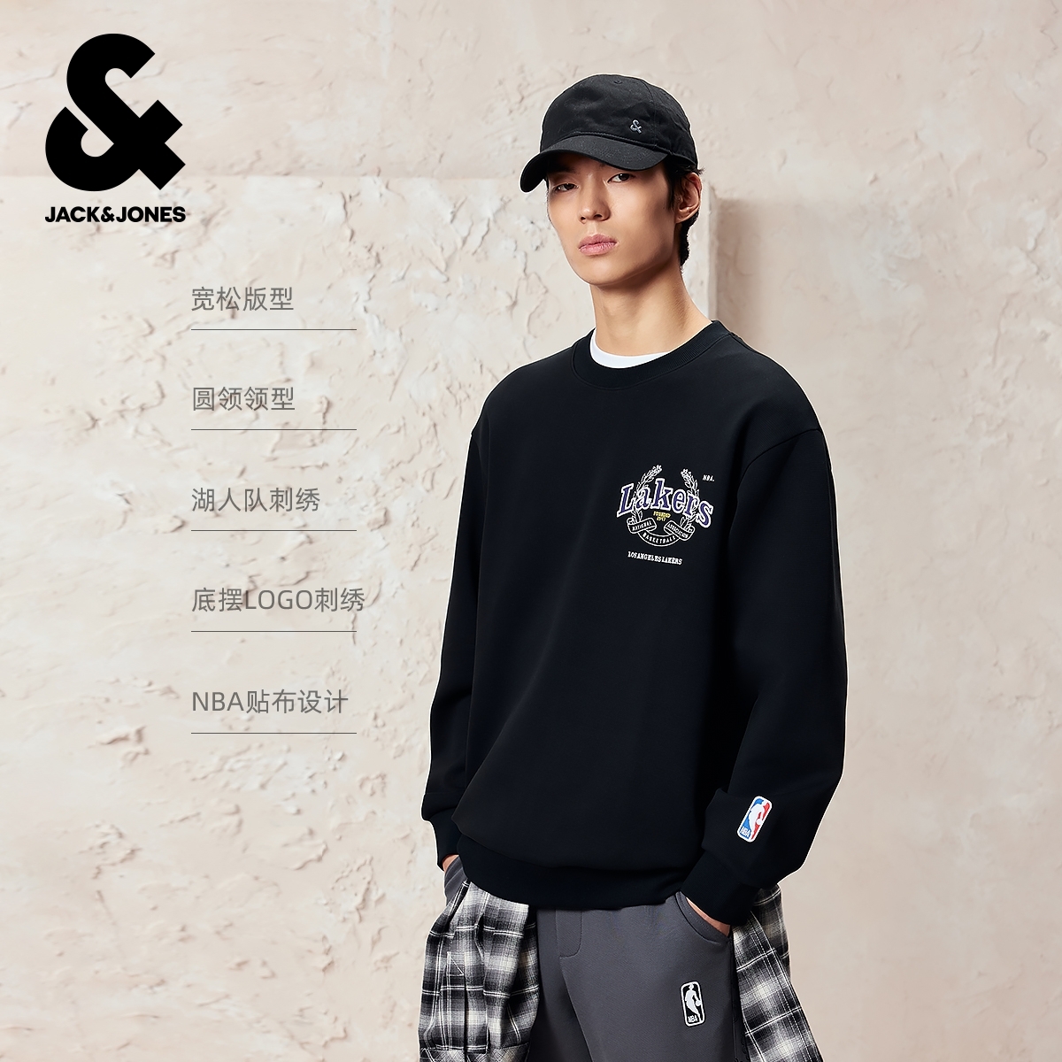 杰克琼斯男装秋季卫衣2025年新款NBA联名圆领套头字母长袖上衣