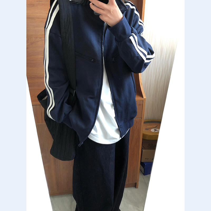 特大码300斤藏蓝色条纹开衫卫衣男款春秋拉链外套美式运动服夹克