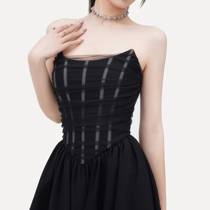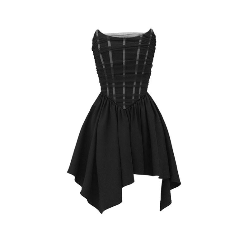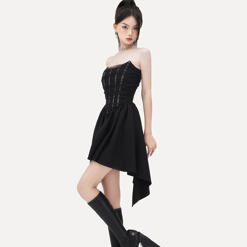 VOCK 暗黑维纳斯 浪漫高级设计感网纱鱼骨显瘦圣诞不规则抹胸裙子