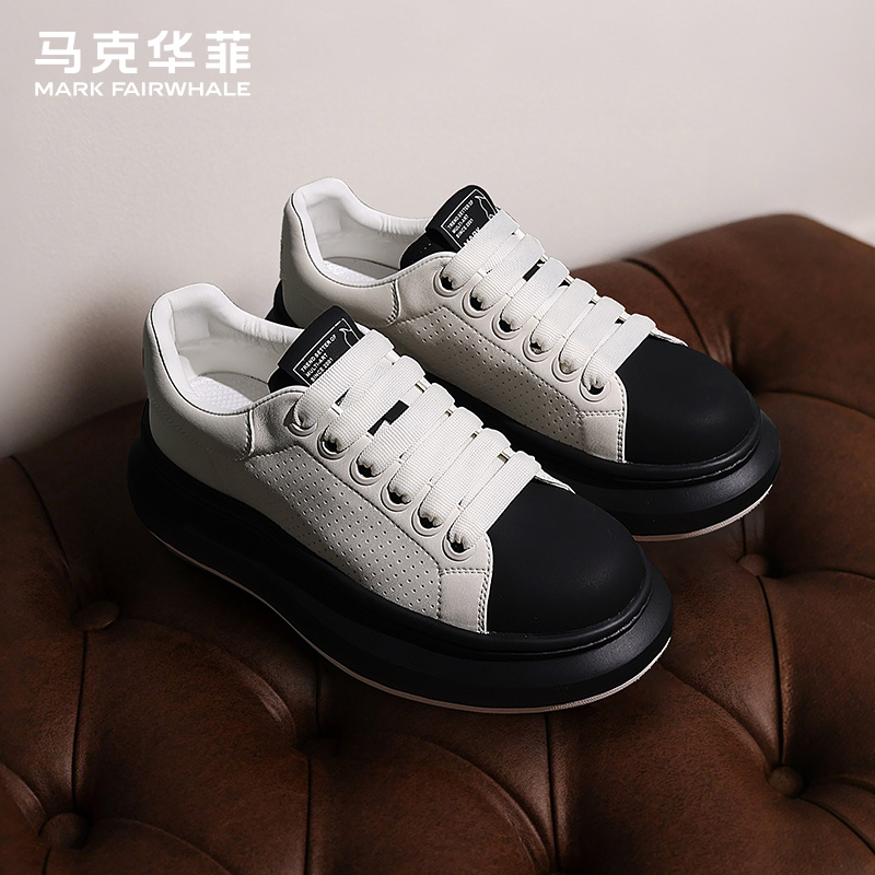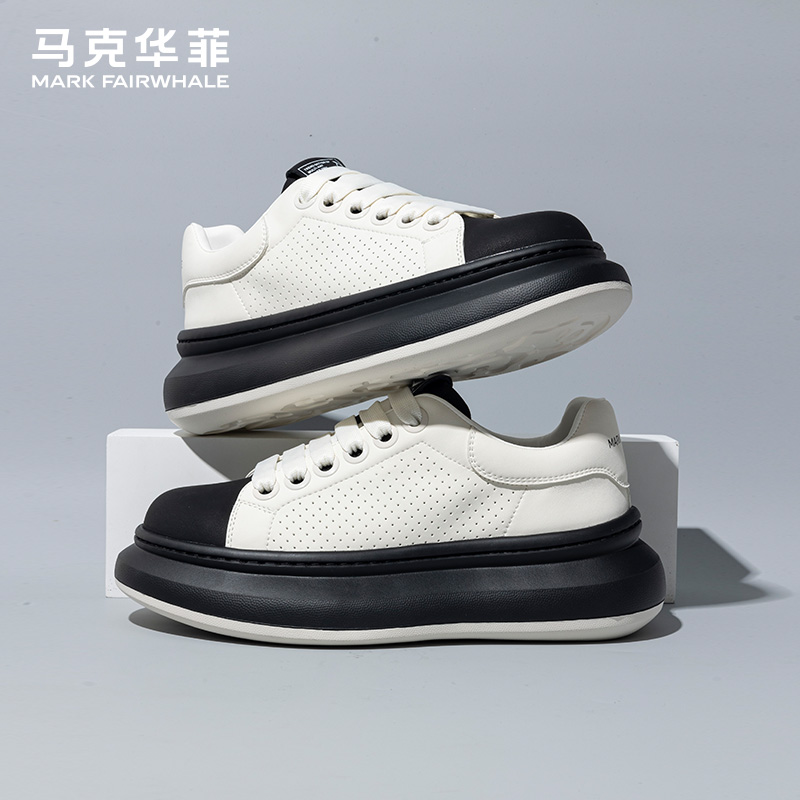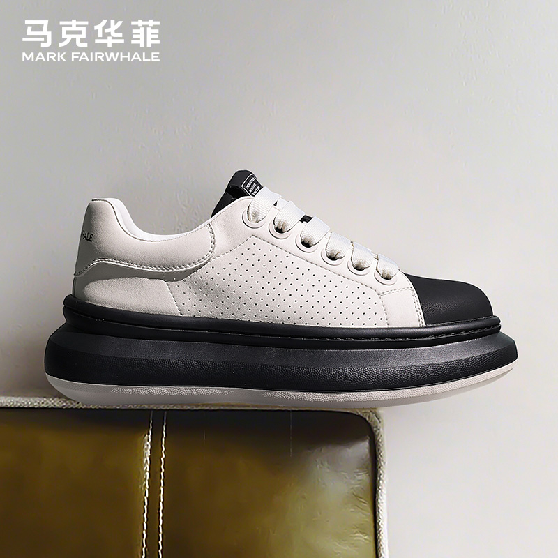 马克华菲男鞋2025新款秋季透气增高男士休闲鞋子男黑白软底板鞋男