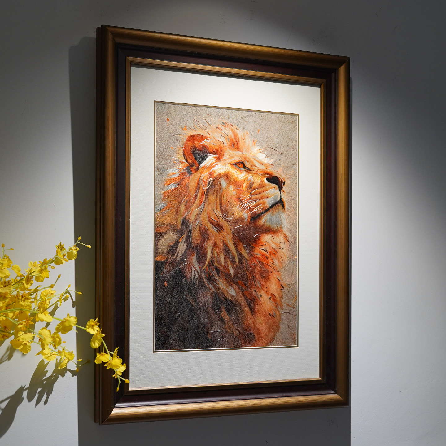 手工苏绣成品实木框挂画书房卧室客厅沙发墙新中式狮子刺绣装饰画
