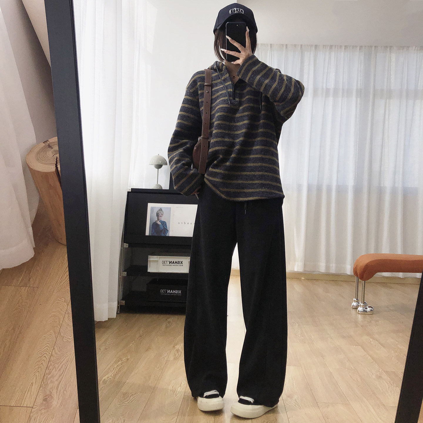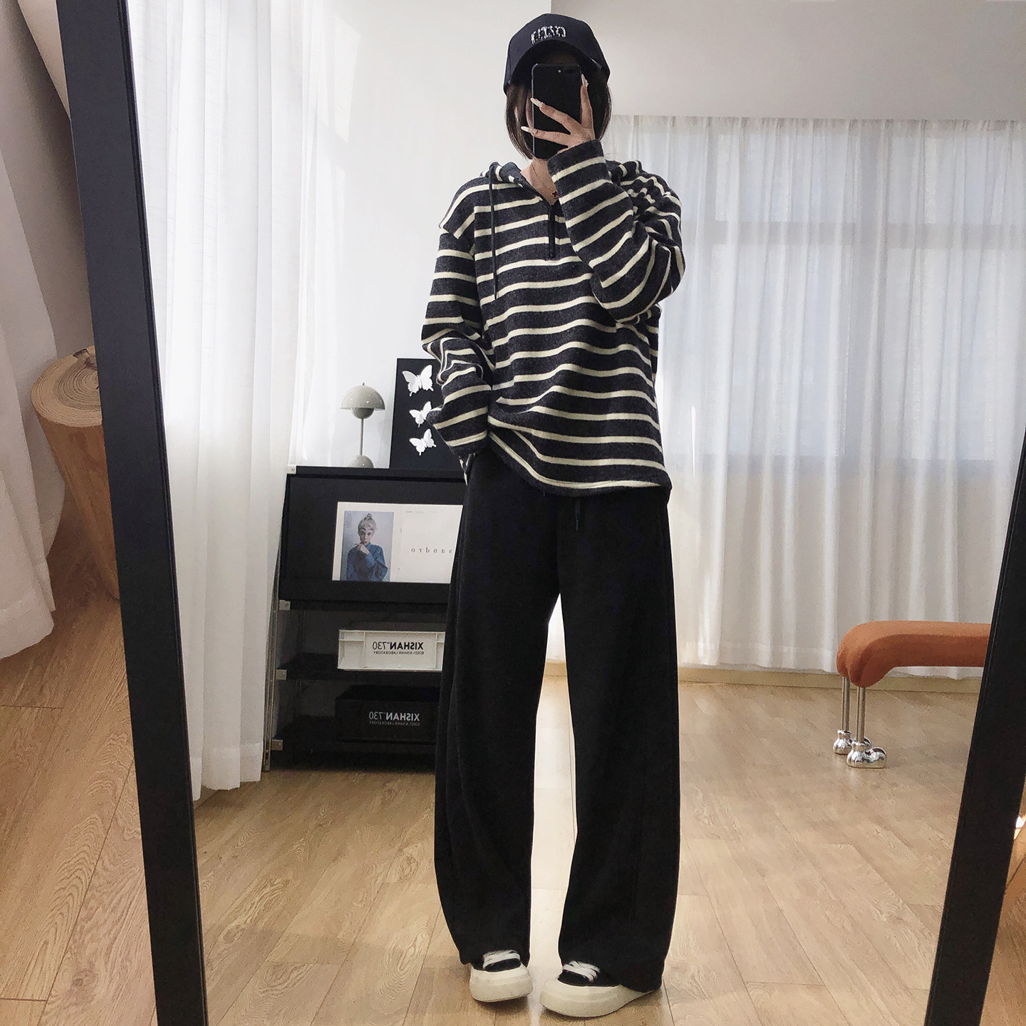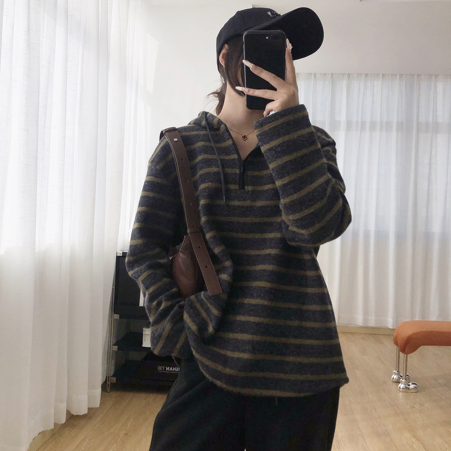 软糯条纹显瘦连帽加厚加绒卫衣女