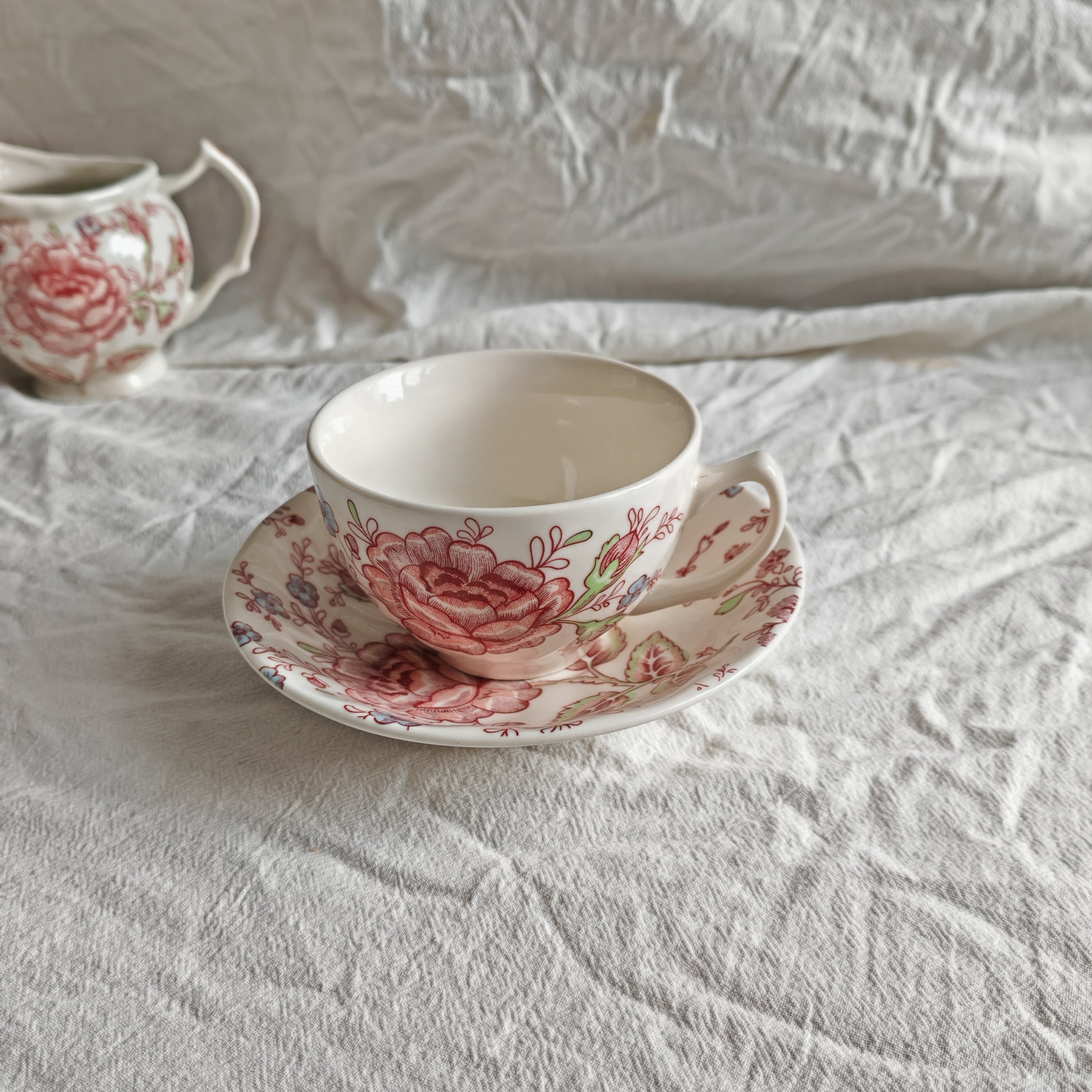 外贸出口红色玫瑰系列好看的中西式餐盘家用菜盘牛排盘咖啡杯碟碗