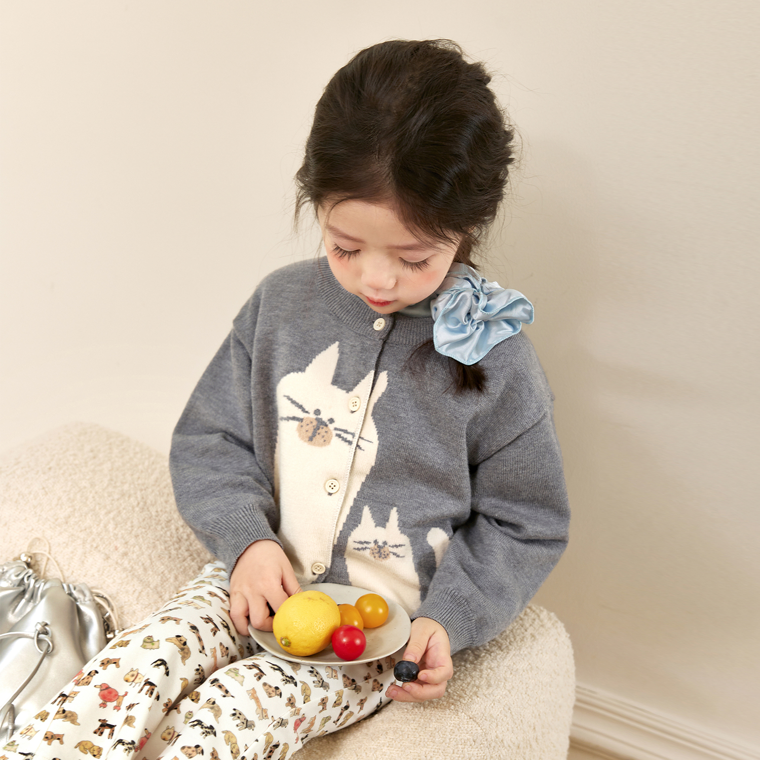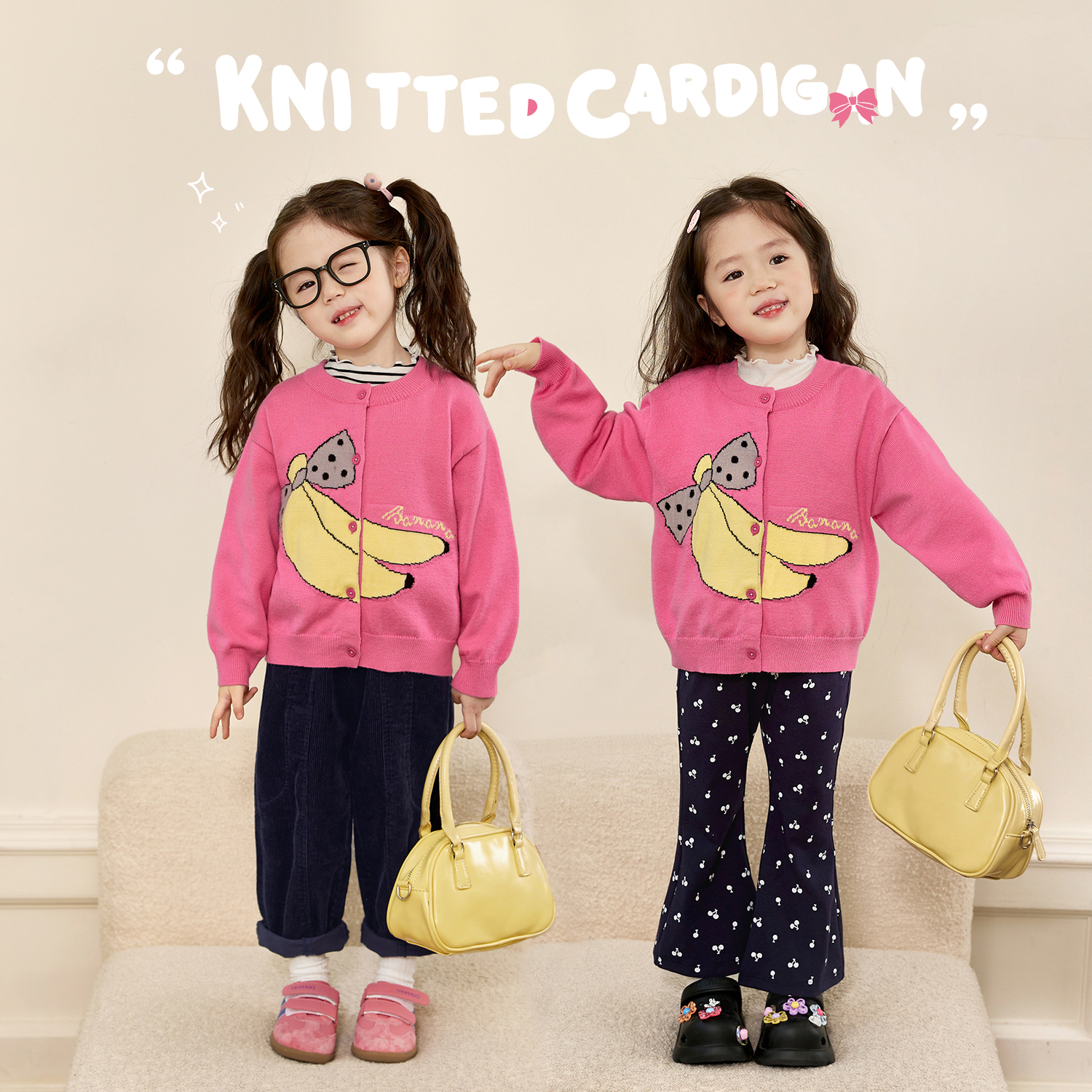 小O宝Okids童装宝宝毛衣针织开衫女图案2025春季新款婴儿开衫外套
