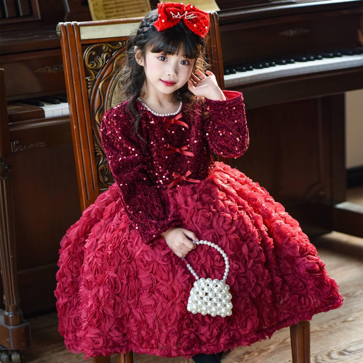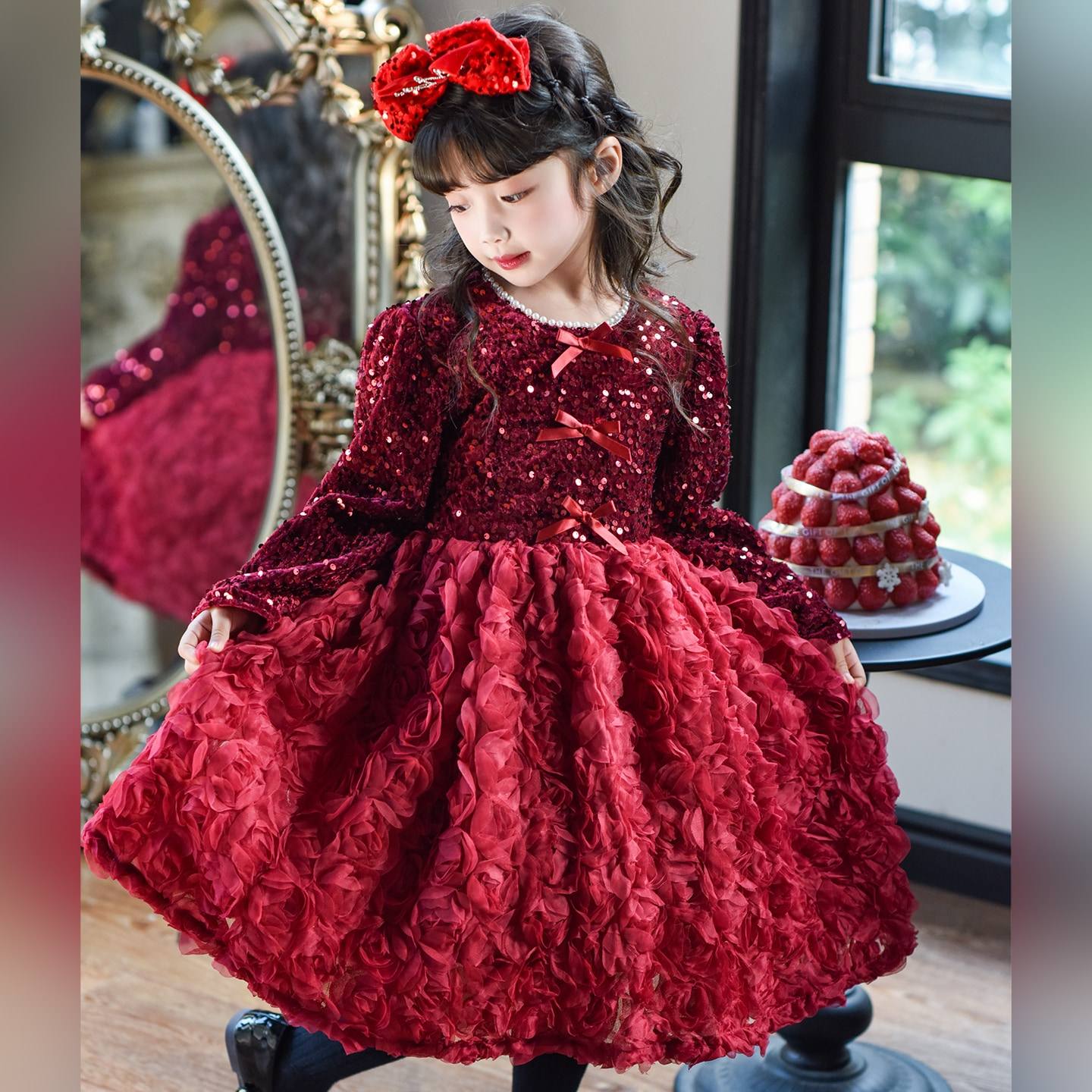 女童连衣裙冬装小女孩公主裙2025新款秋冬加绒亮片花朵女宝宝裙子