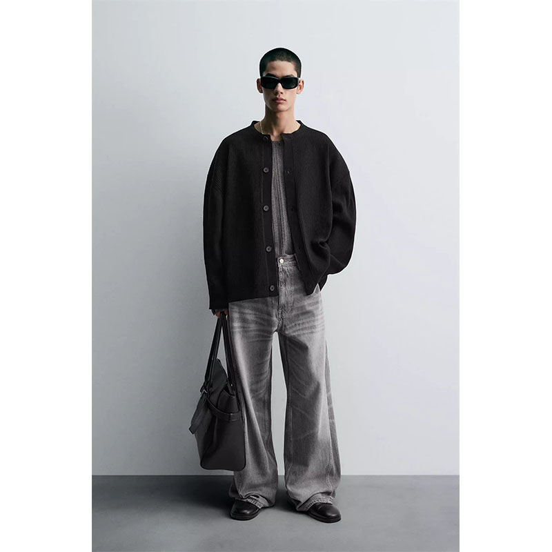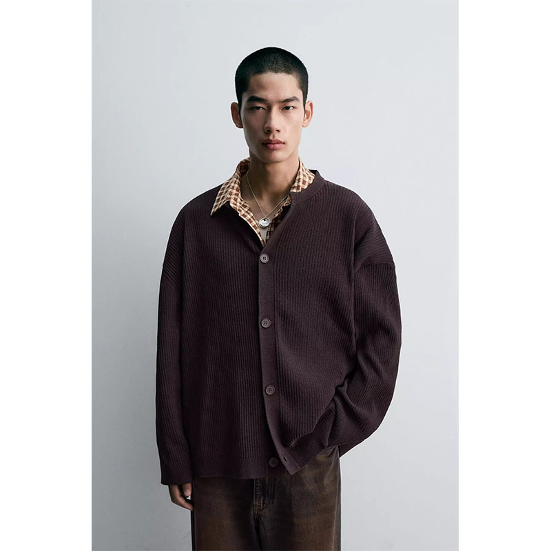 2025秋季新品男装质感修身直筒圆领长袖开衫针织外套4938312 717