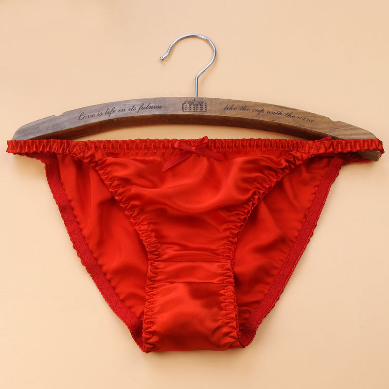 唐京丝红色性感内裤蝴蝶结桑蚕丝