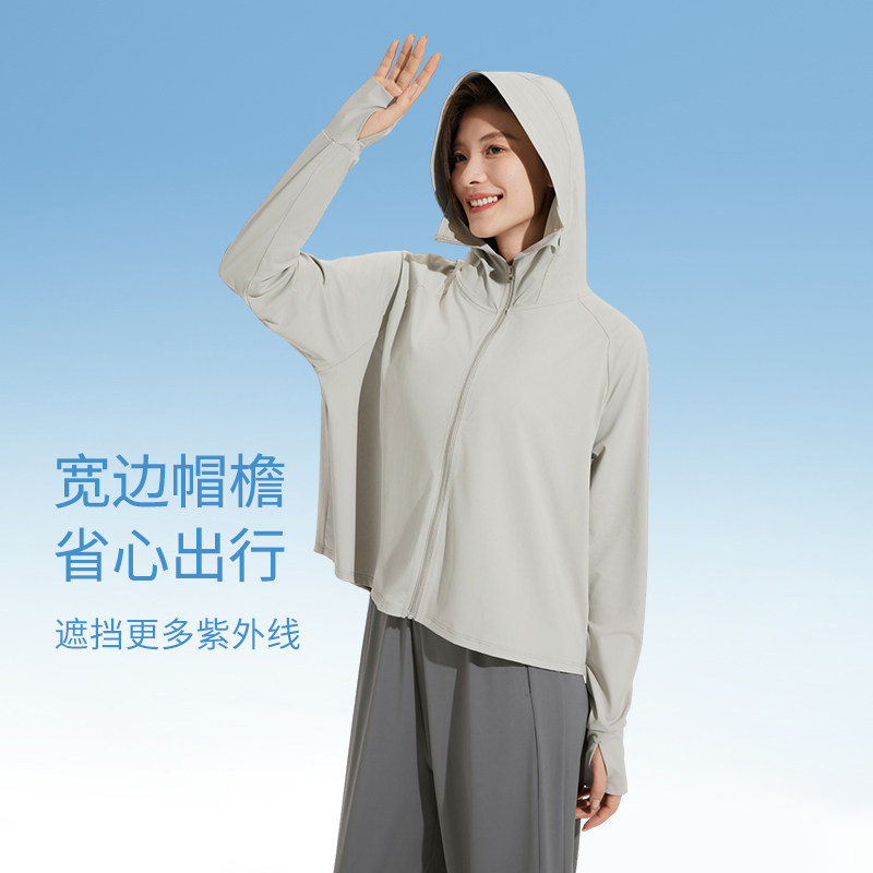 热风女士连帽防晒服2025年夏季新款披肩防晒外套凉感透气防晒衣