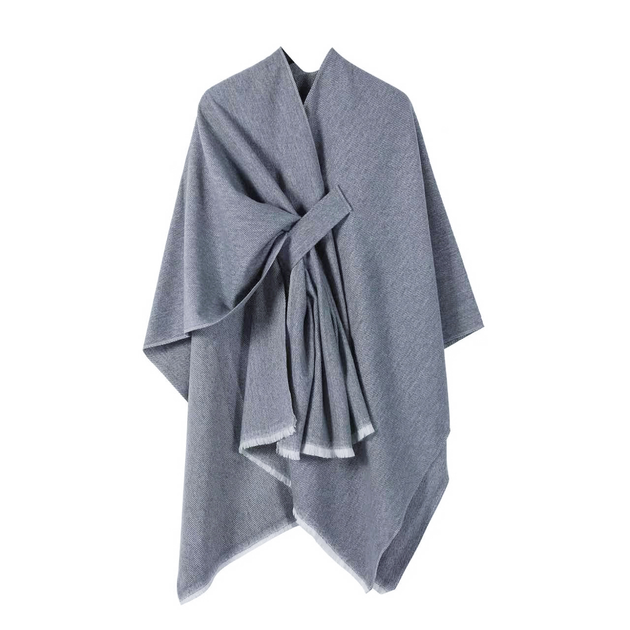 现货欧美外贸纯色披肩素色仿羊绒加杠开叉斗篷外搭秋冬保暖围巾女