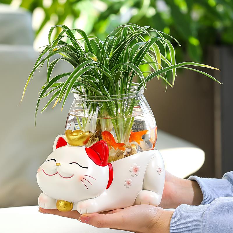 创意花瓶客厅插花小摆件装饰品鱼缸玻璃器皿水养植物绿萝水培花器