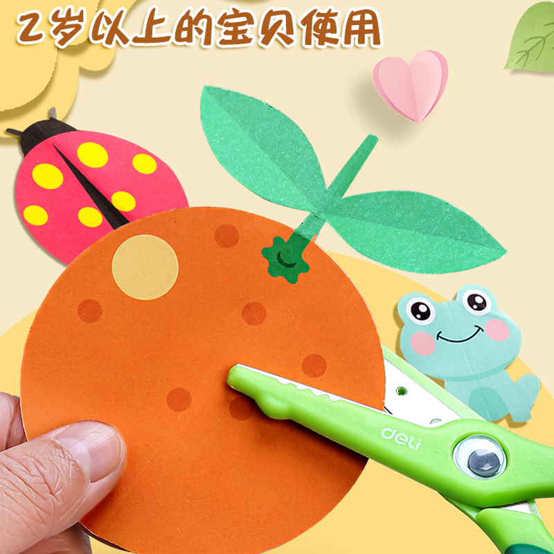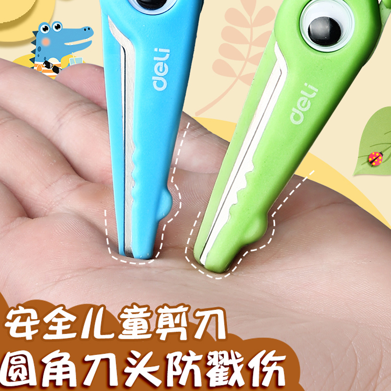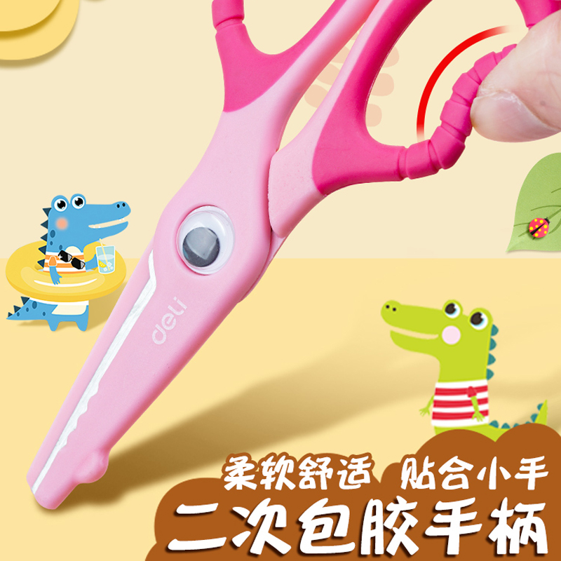 得力儿童安全剪刀包胶小鳄鱼圆头手工制作幼儿园宝宝全身不伤手卡通可爱剪纸专用小剪子美术生小号包边开学
