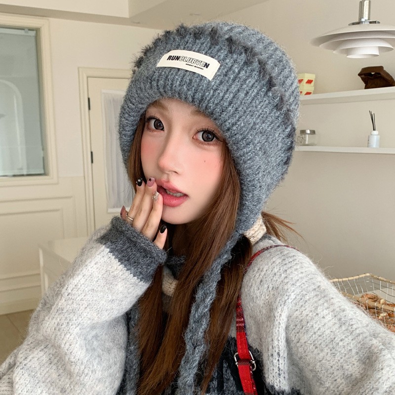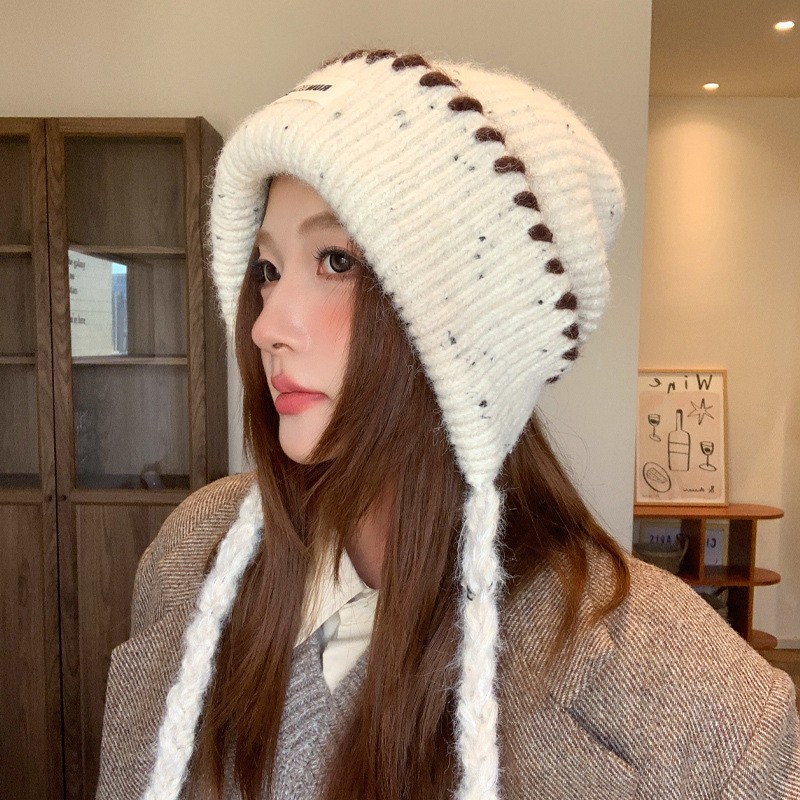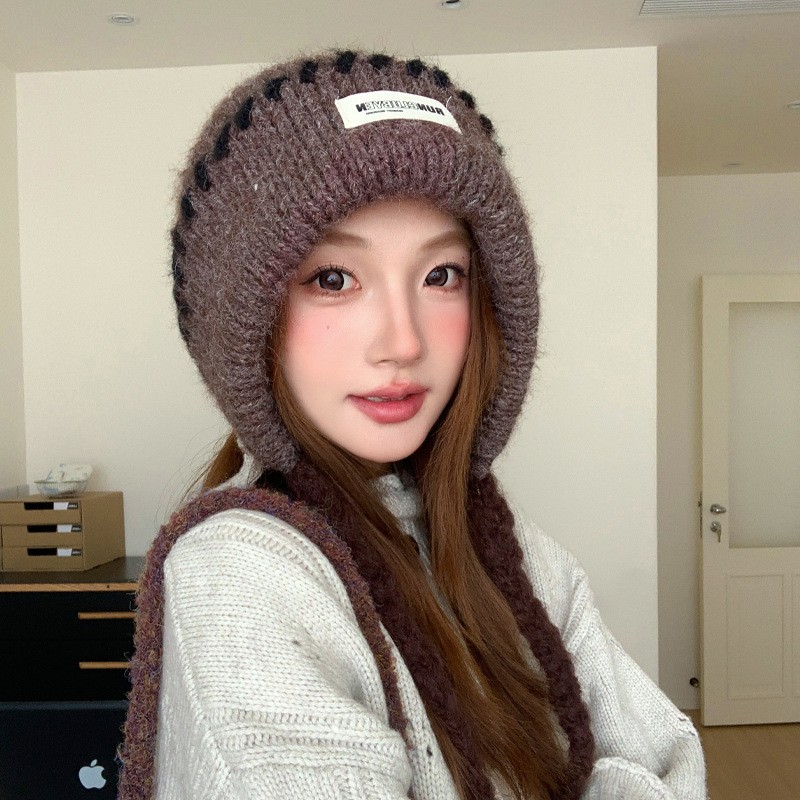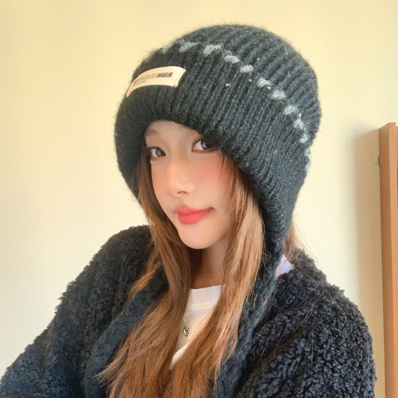 韩版贴布针织帽子女秋冬季2025新款保暖冷帽甜美百搭毛线帽堆堆帽