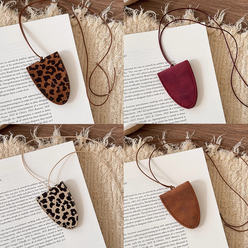 豹纹绒布挂脖磁吸墨镜夹长款项链