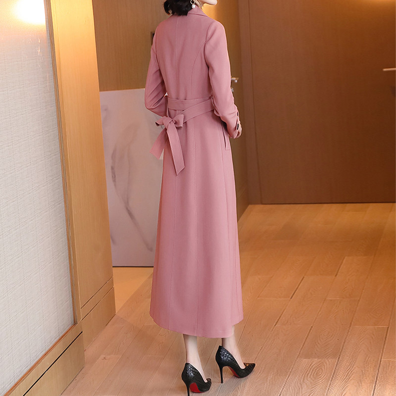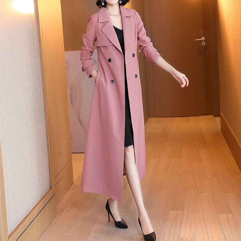 2025春装新款时尚法式气质双排扣风衣系带修身显瘦西装领长款外套