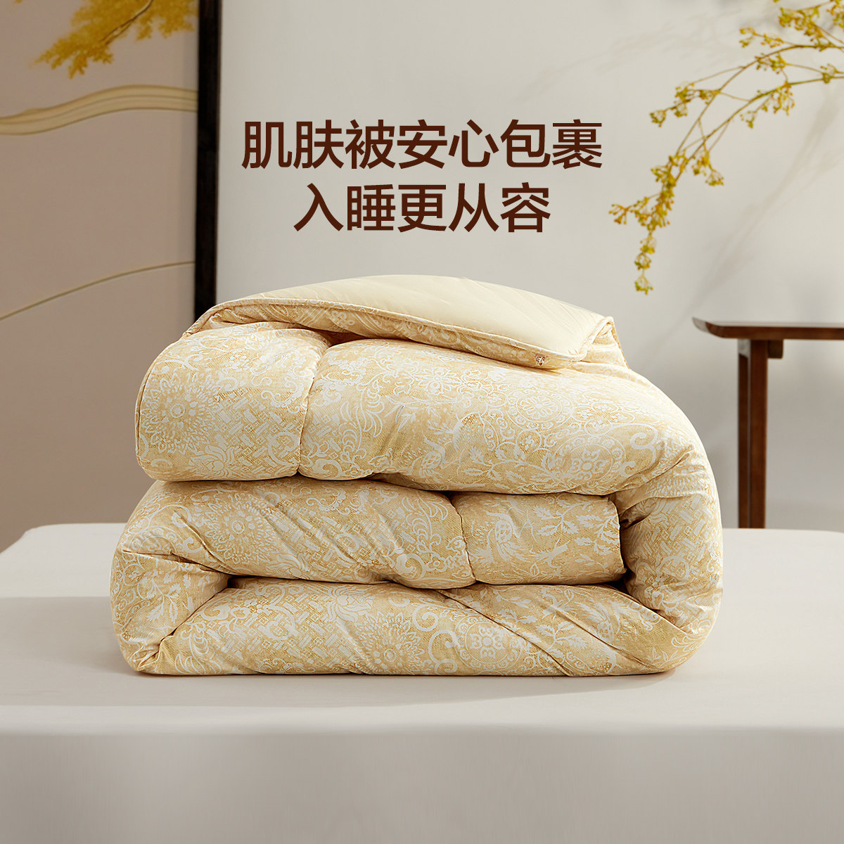 水星家纺100%澳洲羊毛被抗菌春秋被子A类四季被冬被保暖祥纹纳福