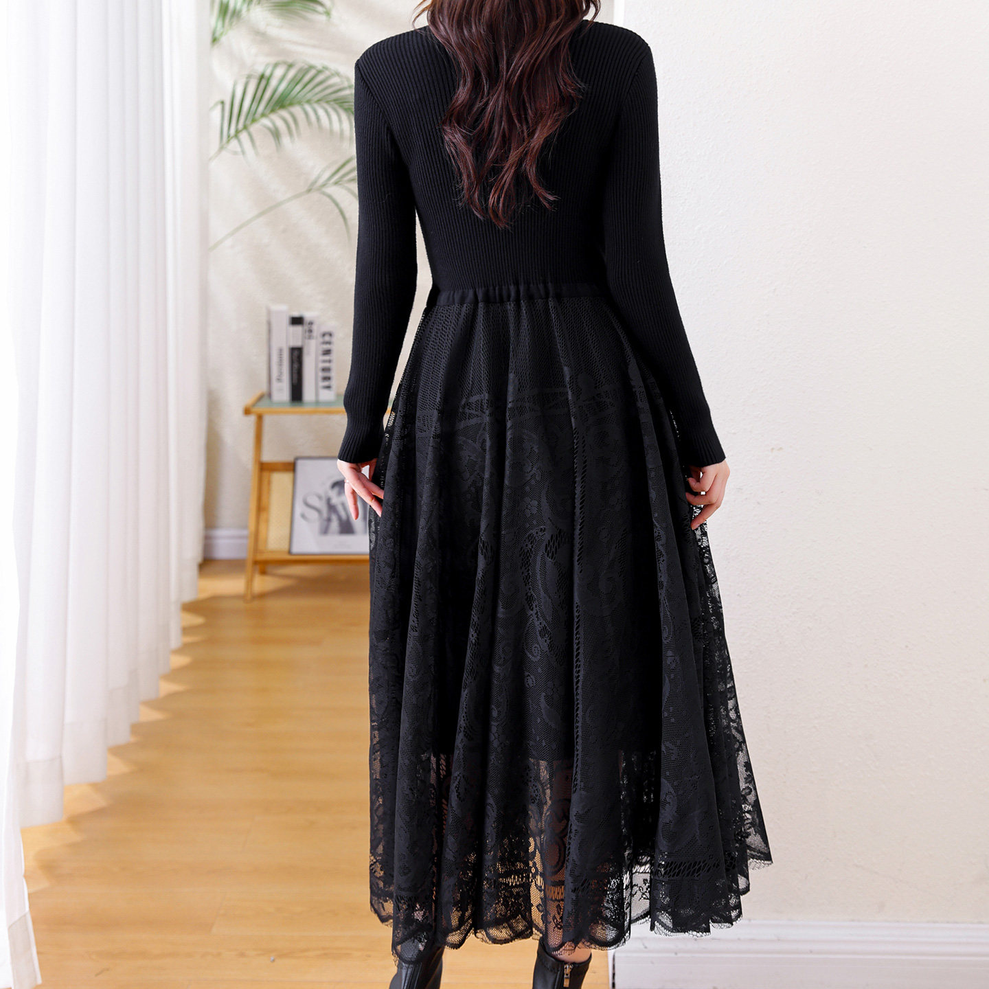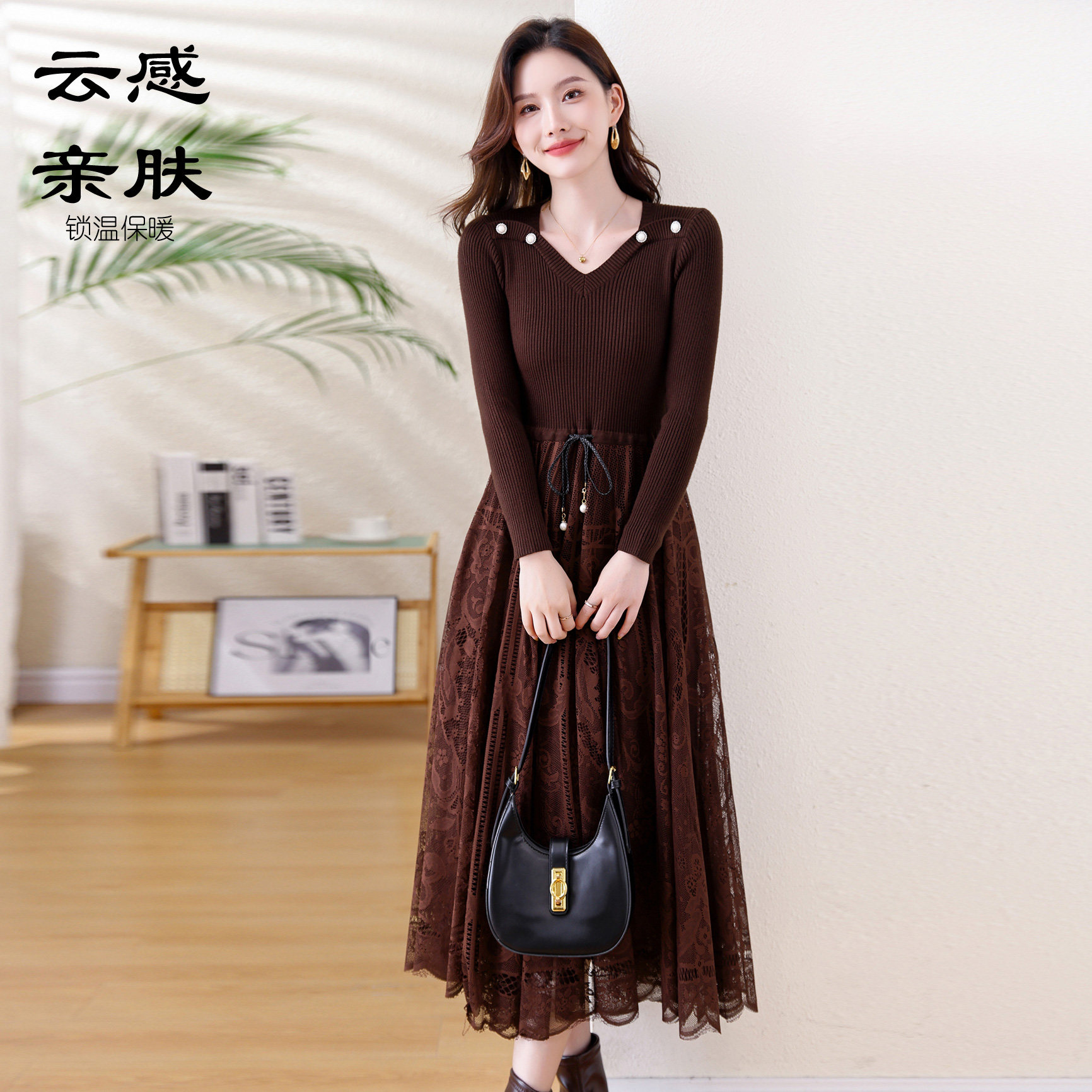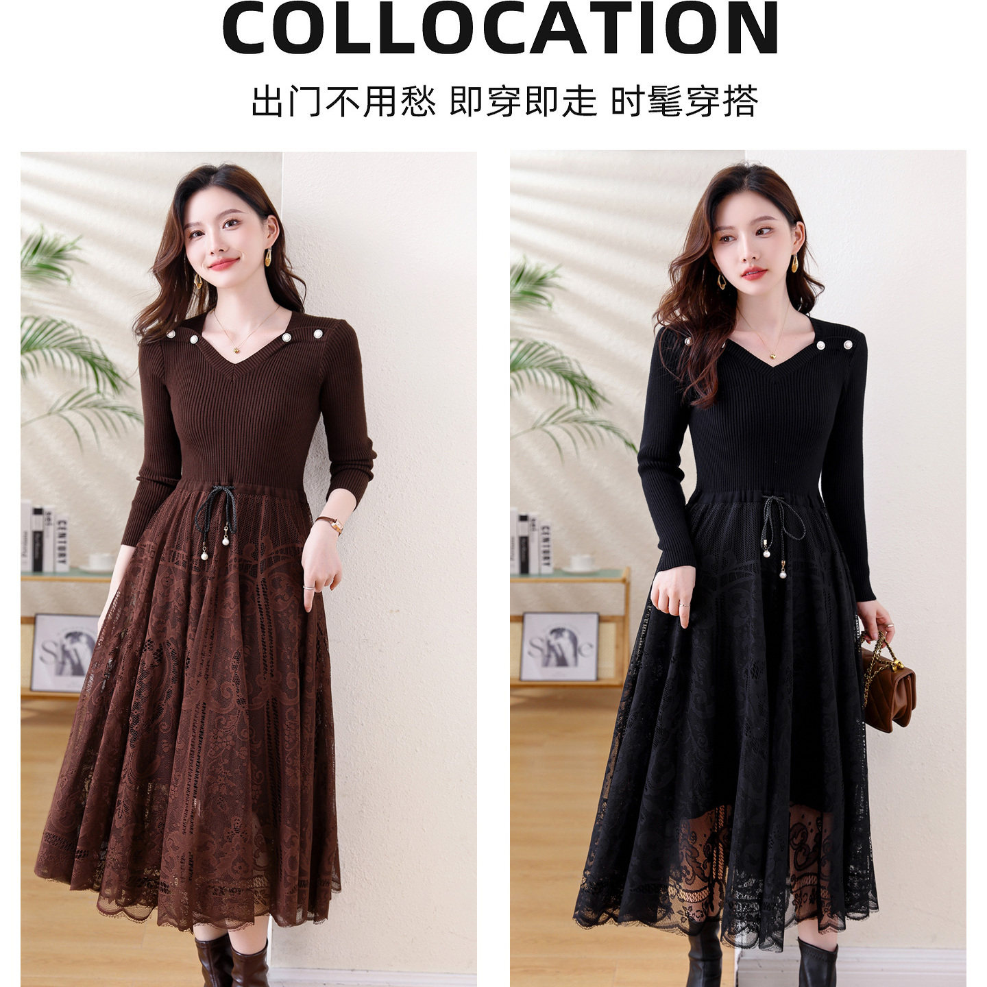 蕴佳洋气设计感蕾丝拼接连衣裙子
