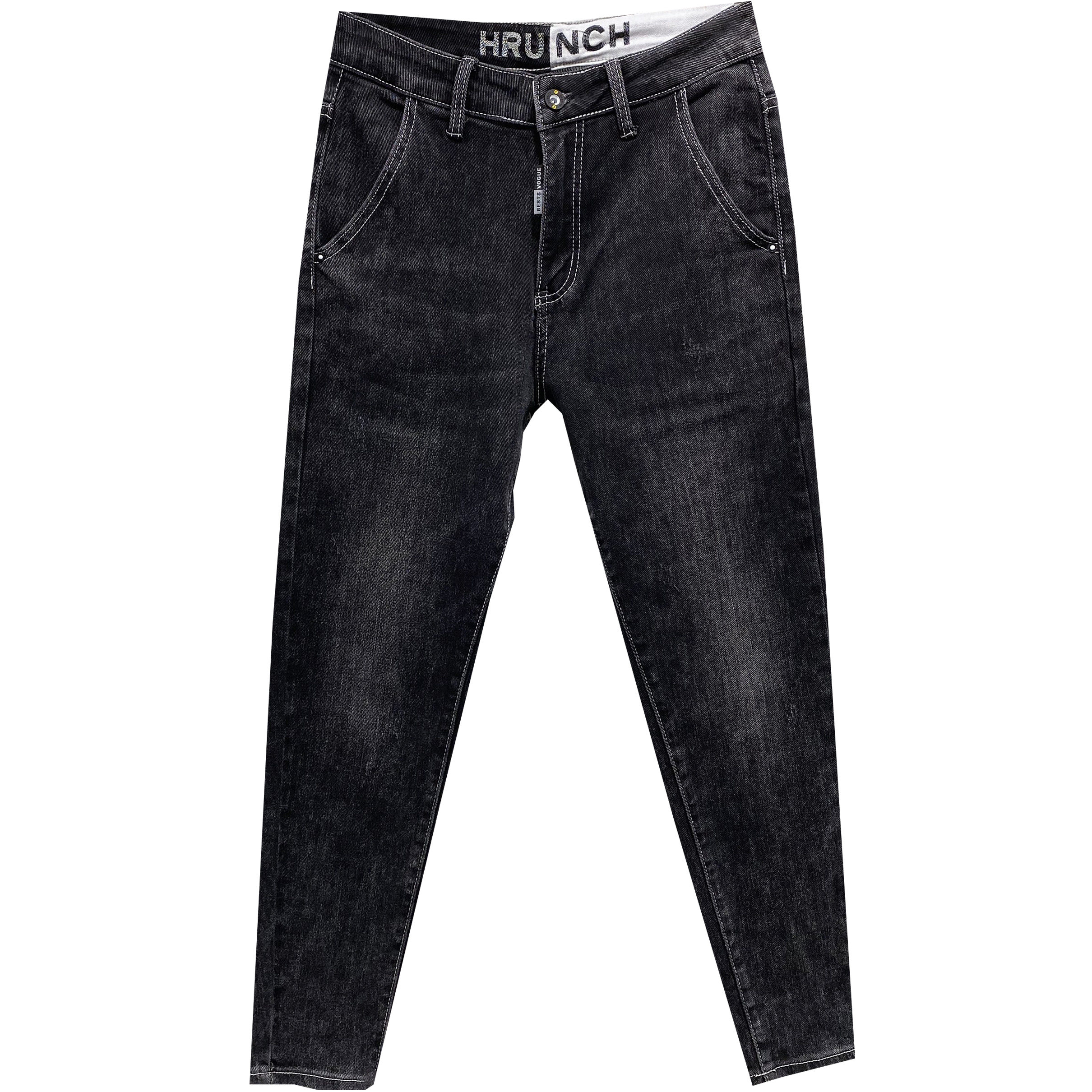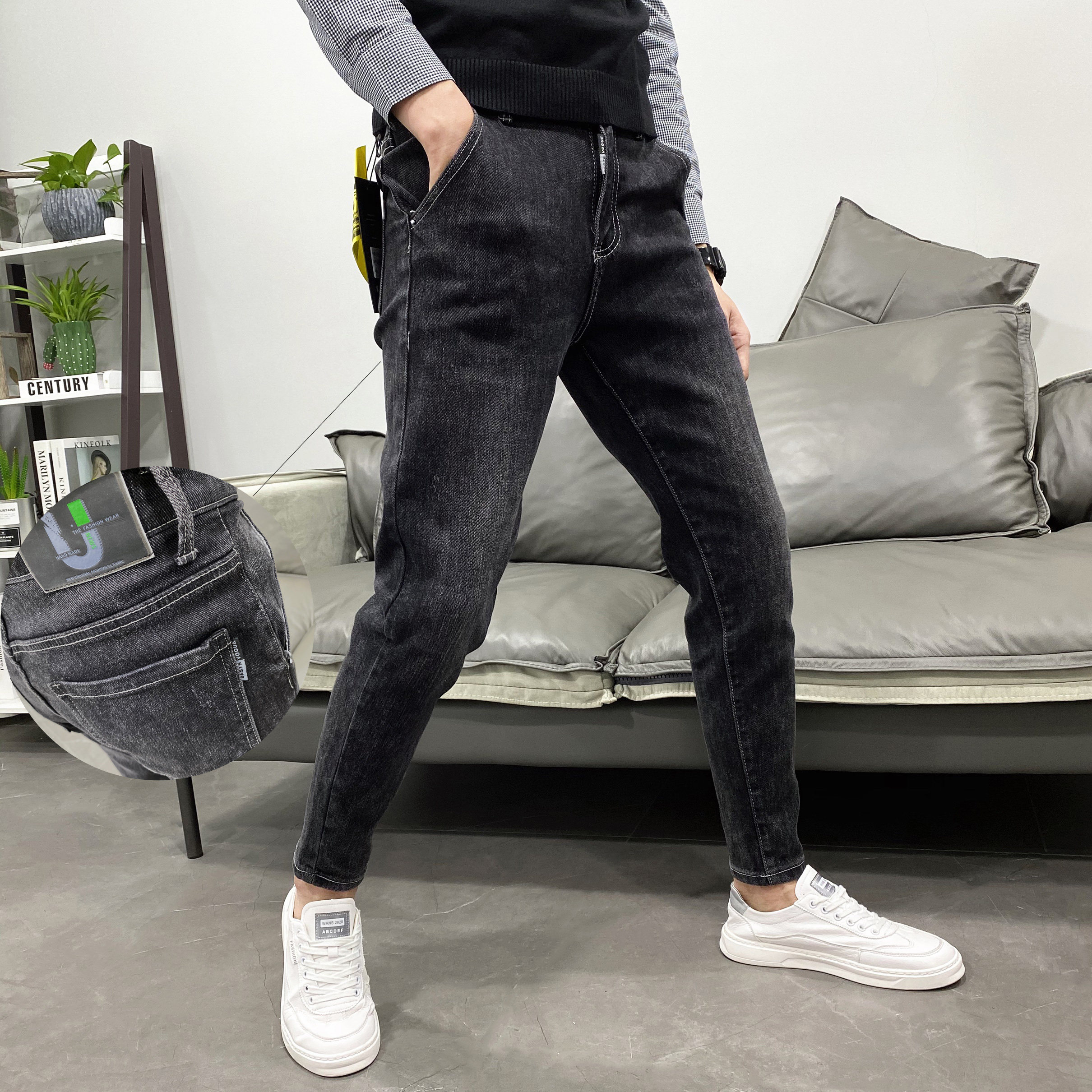 斜插口袋黑灰微垮小脚修身牛仔裤男潮秋韩版社会青年学生百搭长裤