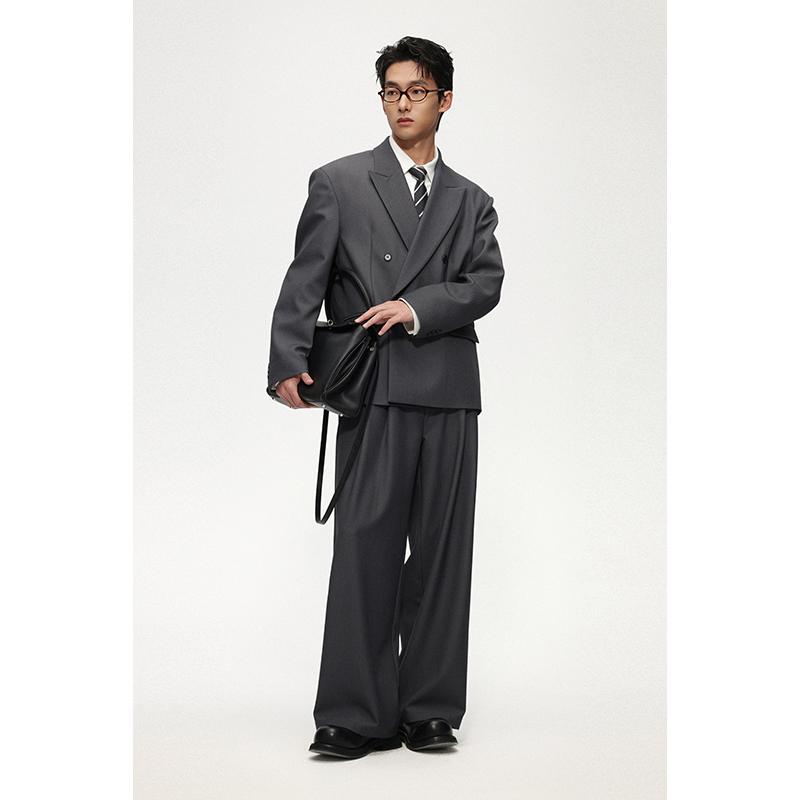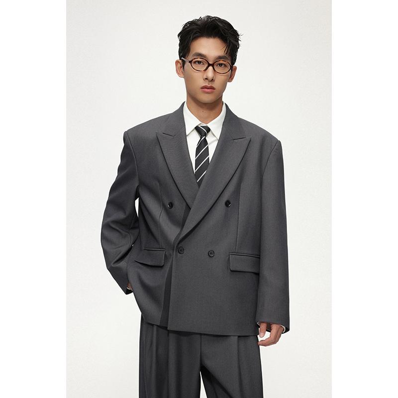 双排拼色枪驳领休闲西装外套