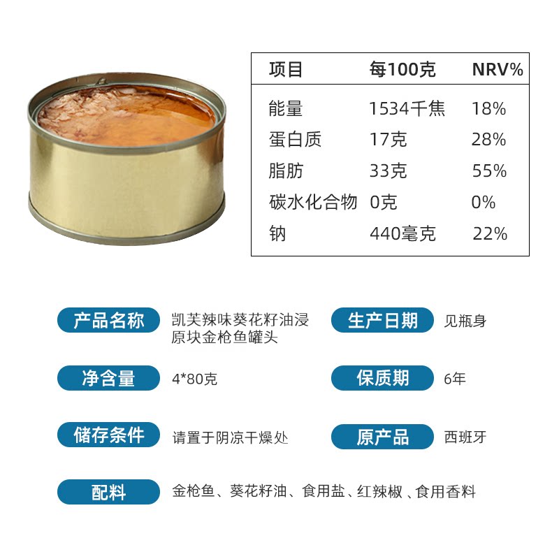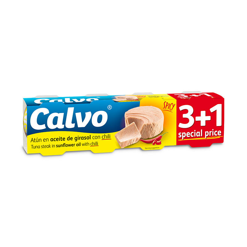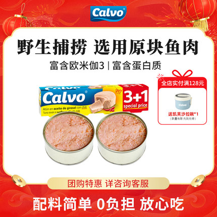 Calvo凯芙进口红辣椒葵花籽油浸金枪鱼罐头4*80g速食沙拉吞拿鱼