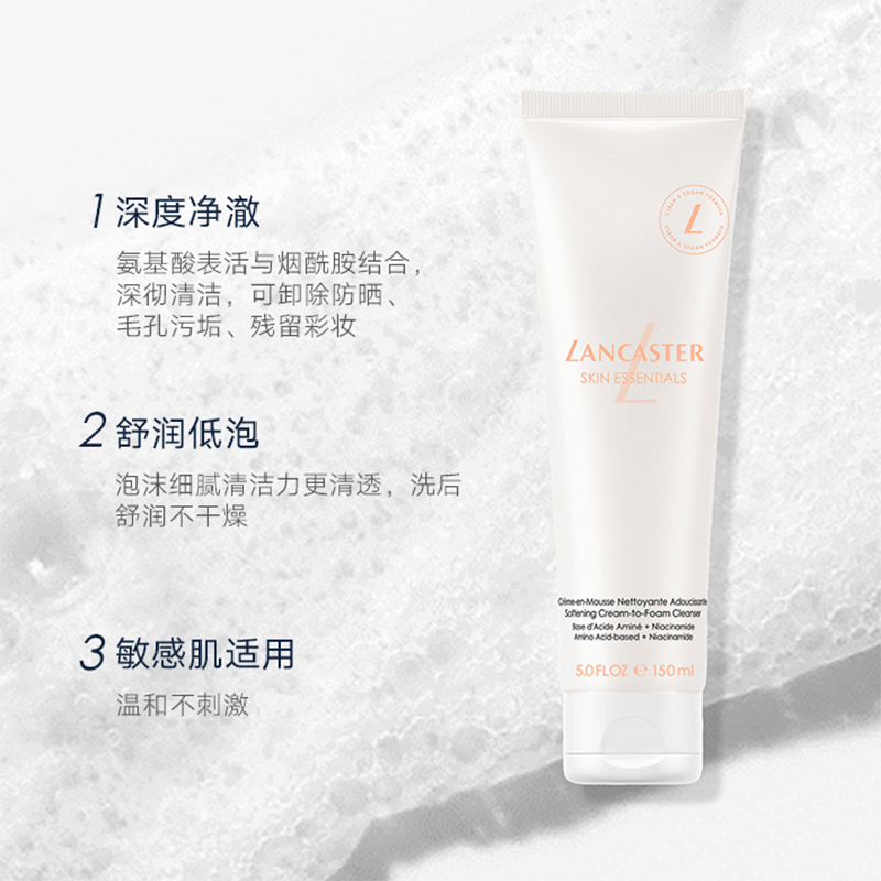 LANCASTER/兰嘉丝汀柔嫩洁面膏温和洁净净澈舒润焕亮洗卸二合一