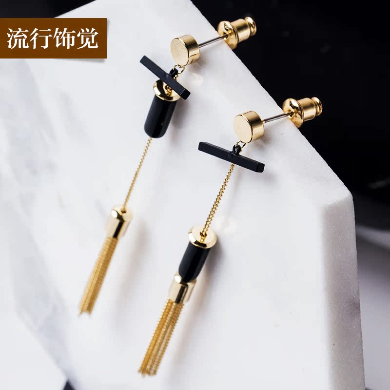 流行饰觉 韩版简约几何长款流苏耳环时尚双色电镀个性耳饰女新品