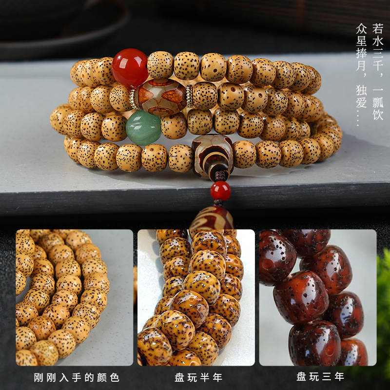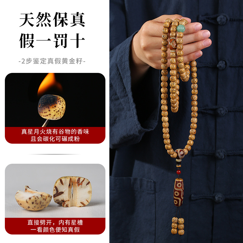 星月菩提黄金籽手串108颗月朗星稀鸡油黄海南星月佛珠文玩手链