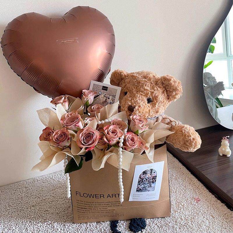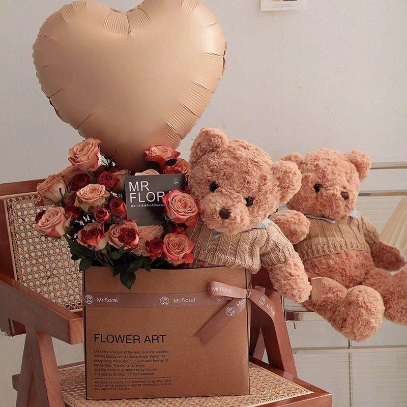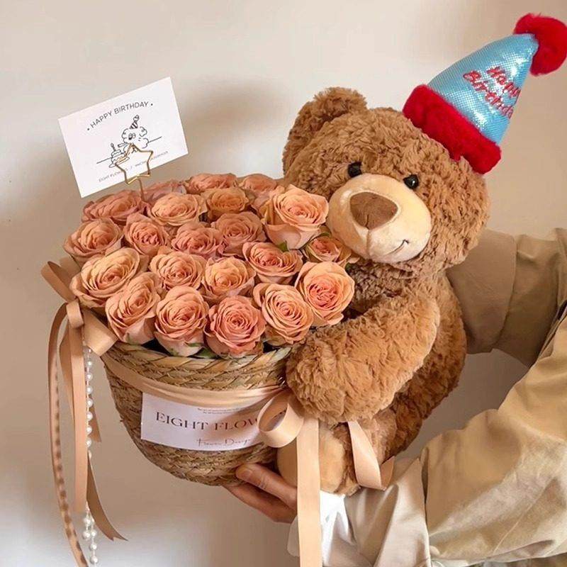 全国小熊礼袋抱抱桶花束送女友生日礼物鲜花速递同城广州深圳配送