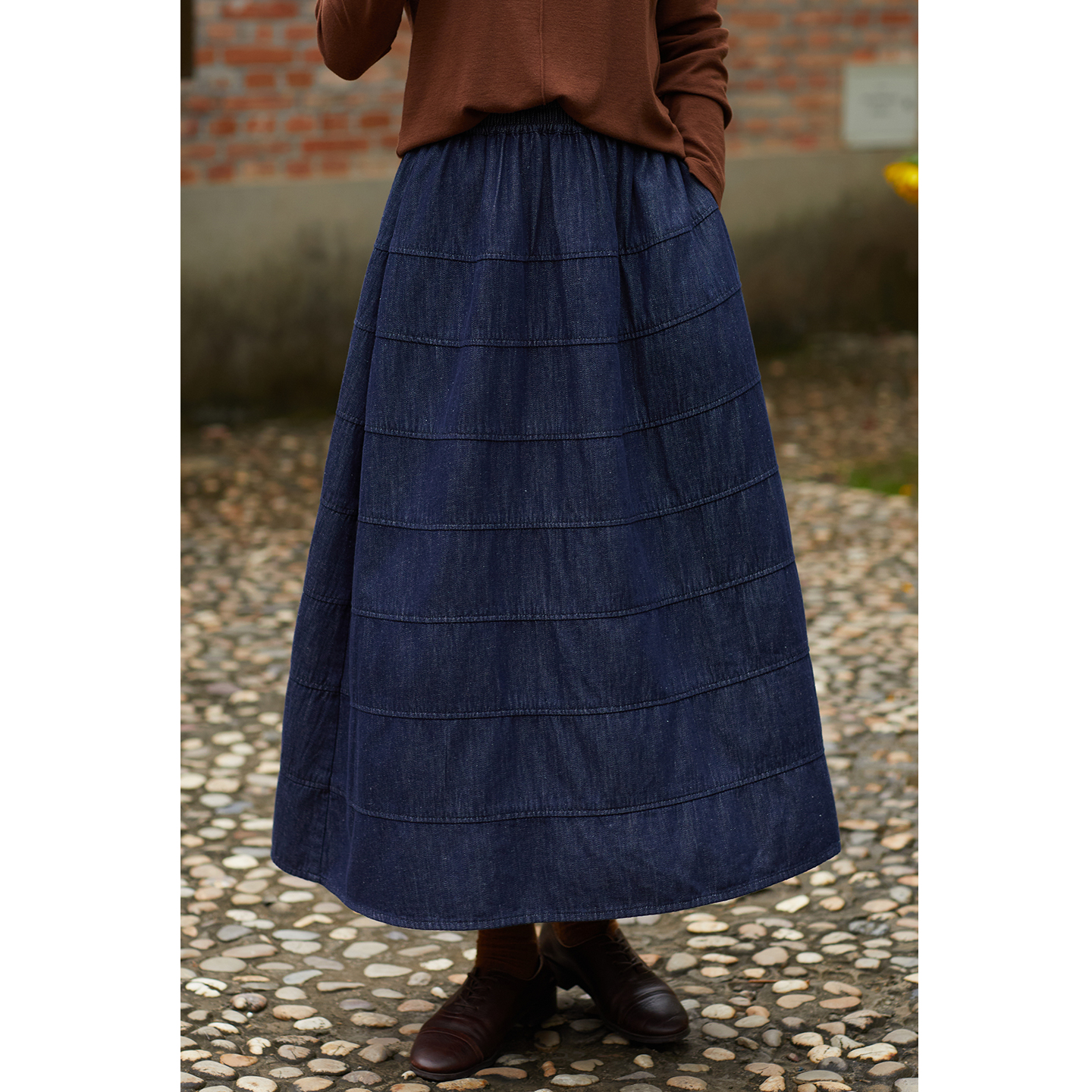 忘城H1367座/一叶梧桐/秋冬新款汉麻棉色织牛仔半身裙复古a字半裙
