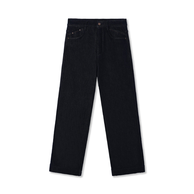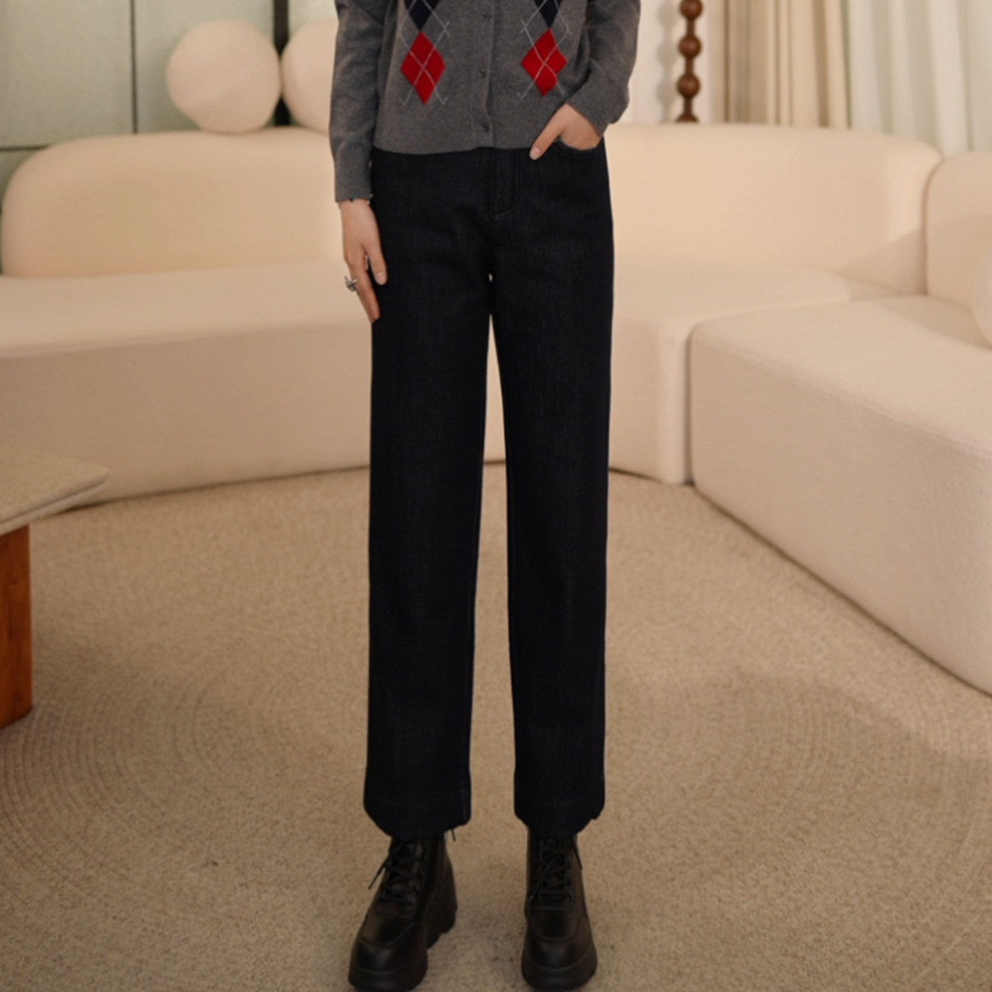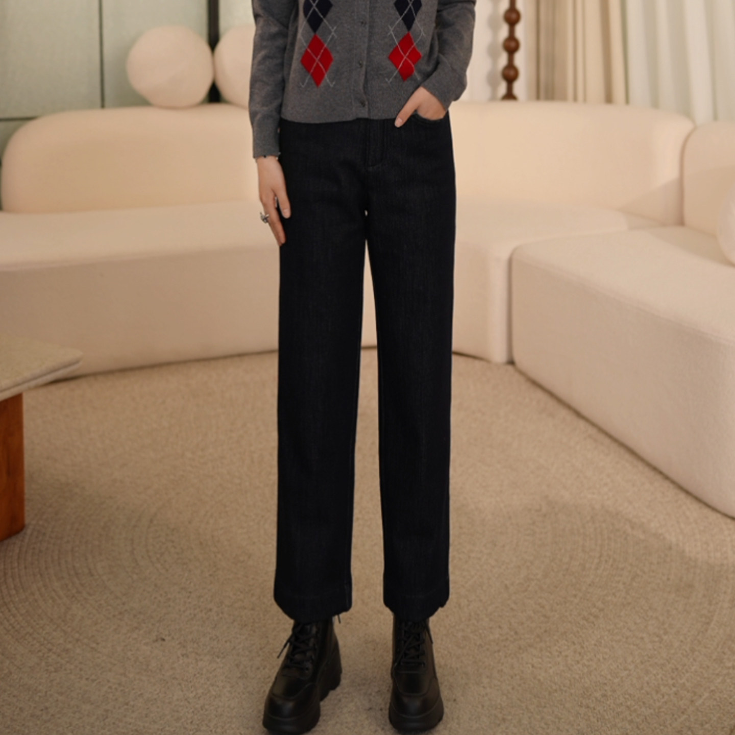 枫竺中高腰遮胯显瘦加绒加厚保暖九分牛仔裤女2025冬季黑色直筒裤