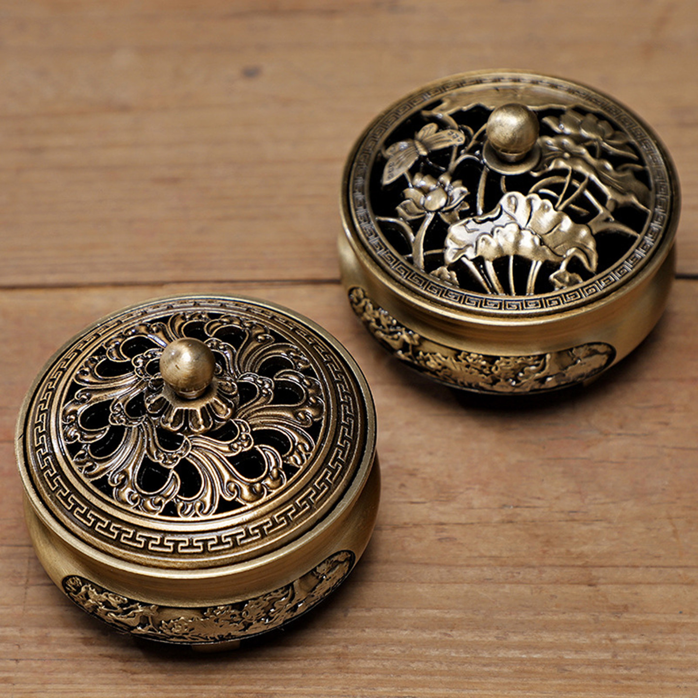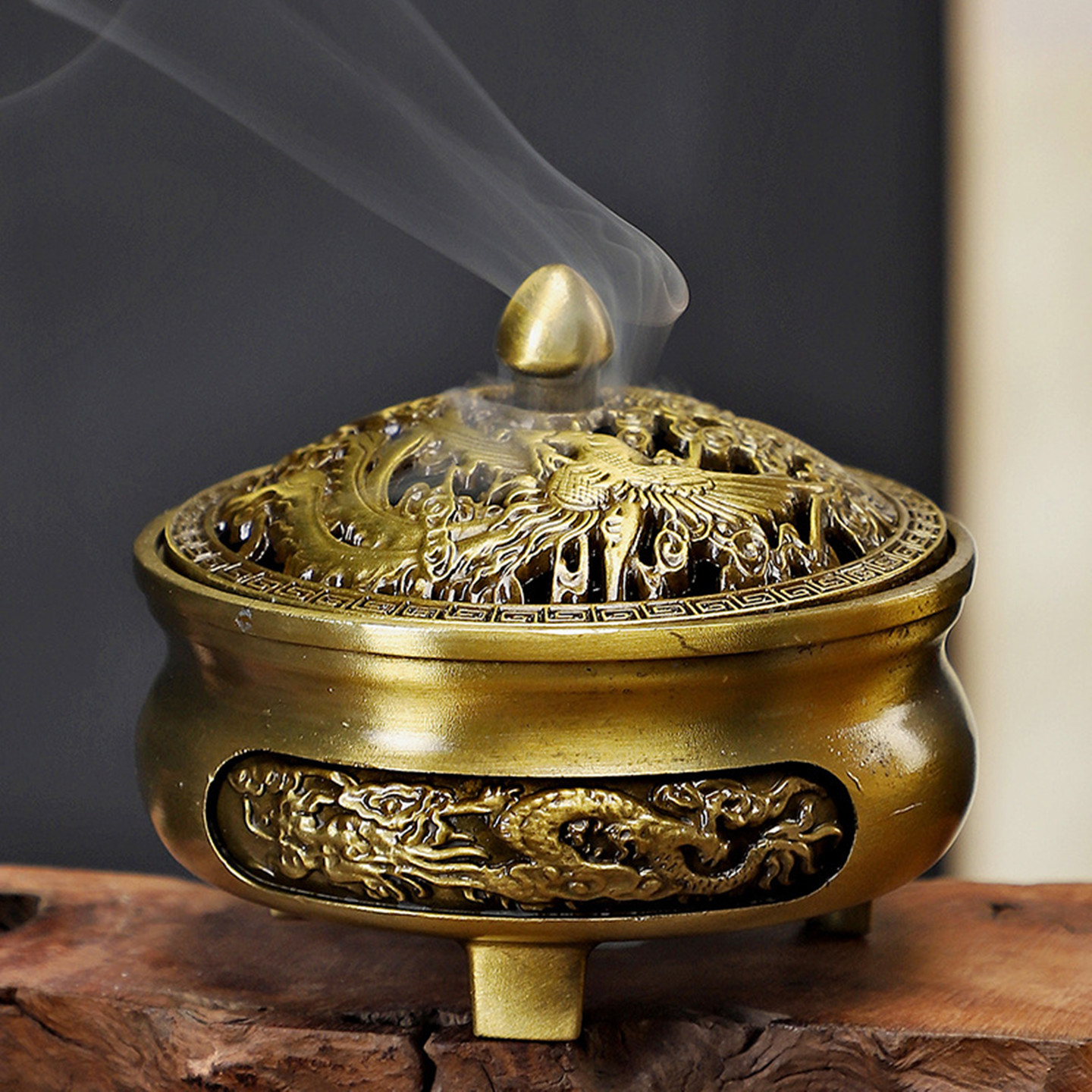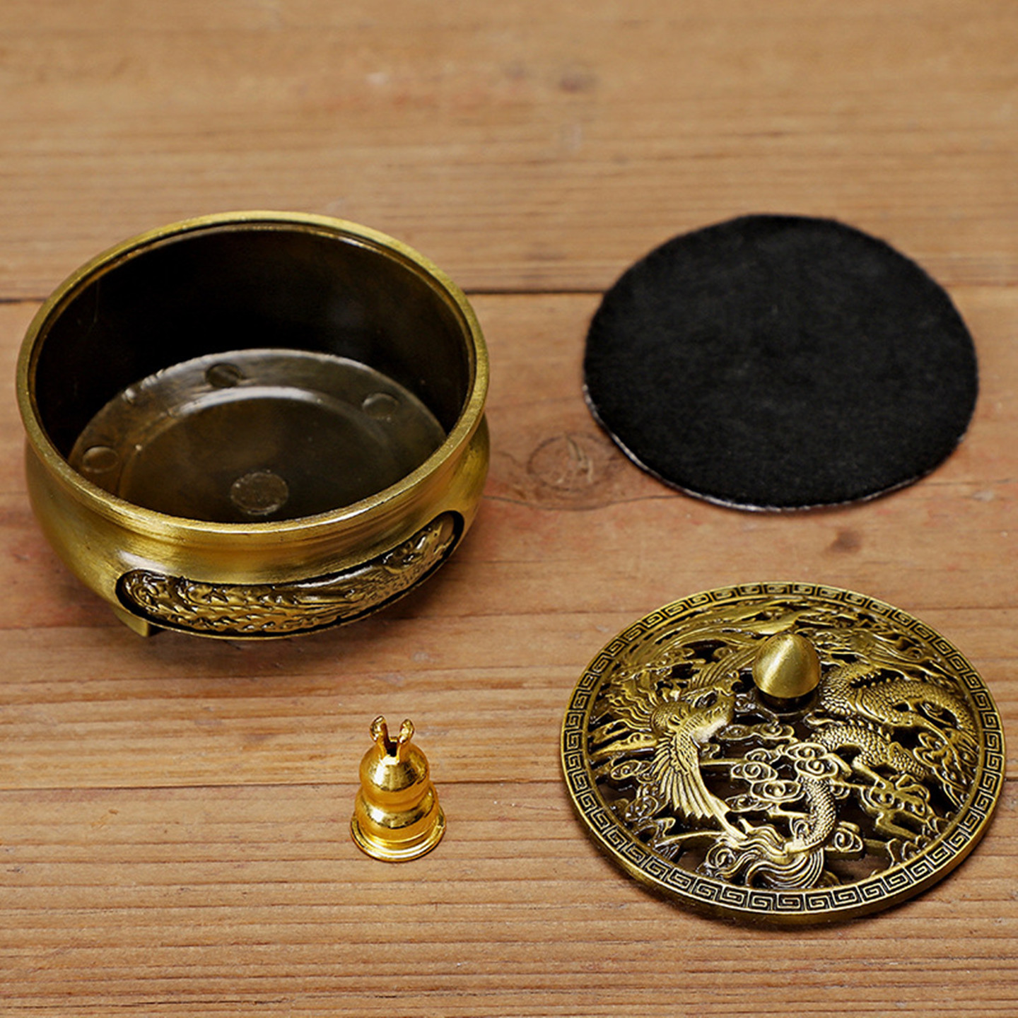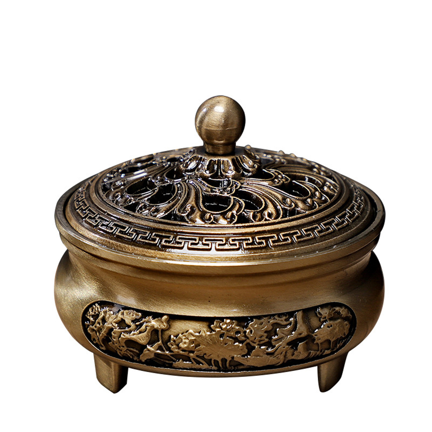 香炉摆件合金创意复古盘香炉家用玄关香道三足摆件塔香檀香香薰炉