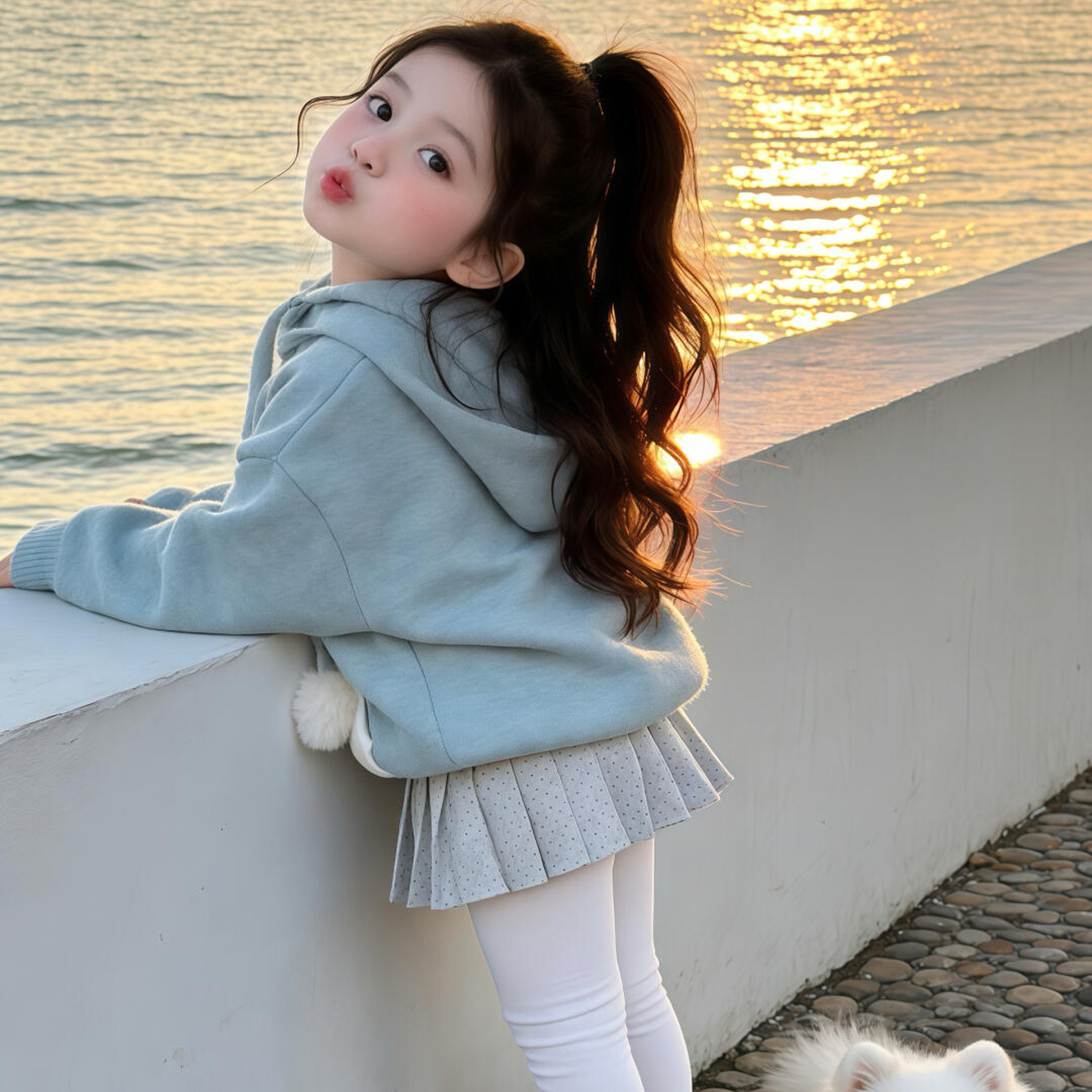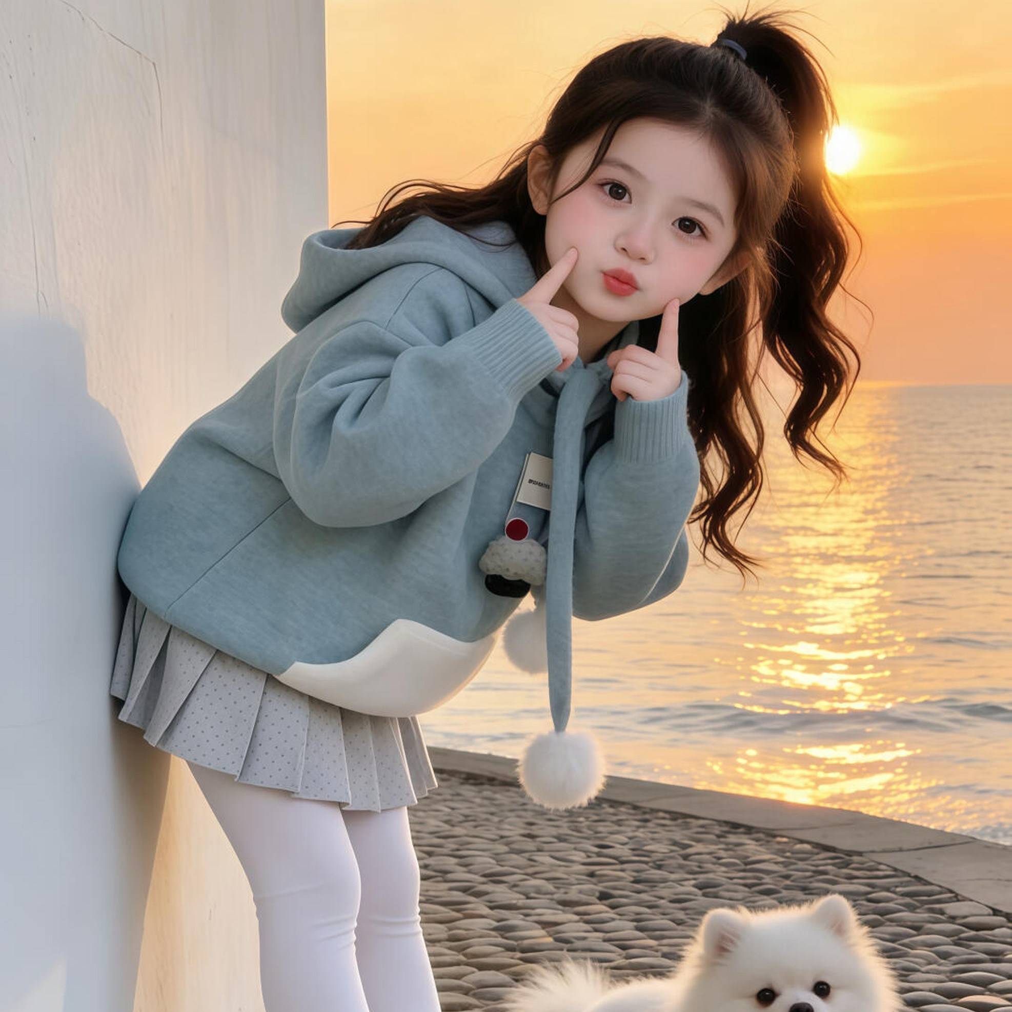 女童套装冬季2025新款女宝宝连帽套头保暖毛衣儿童裙裤两件套冬天