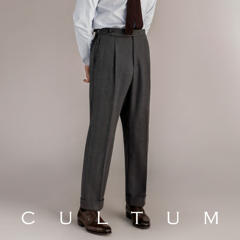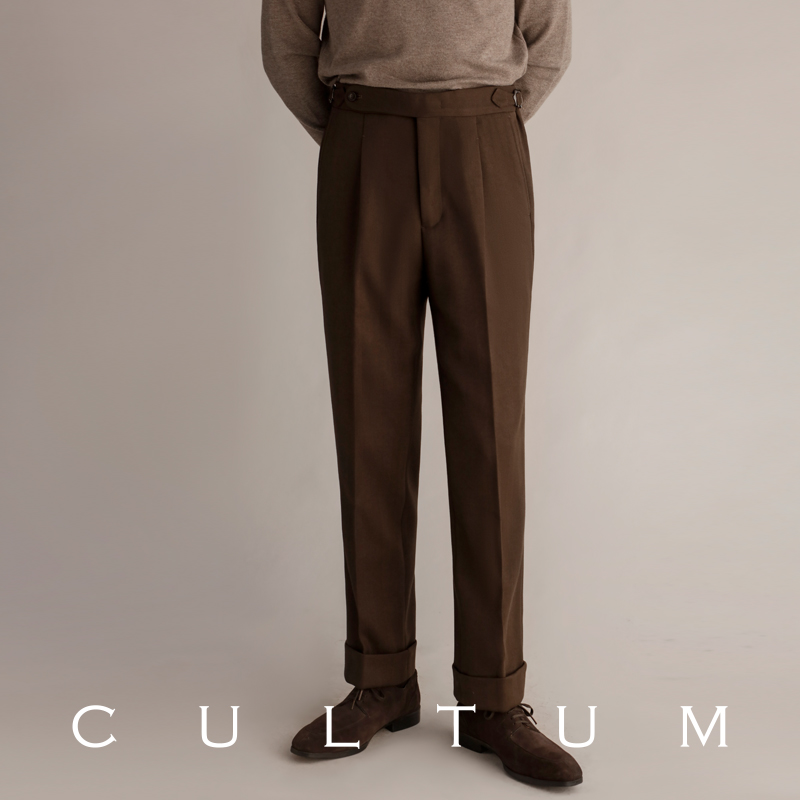CULTUM人字纹单褶高腰西裤