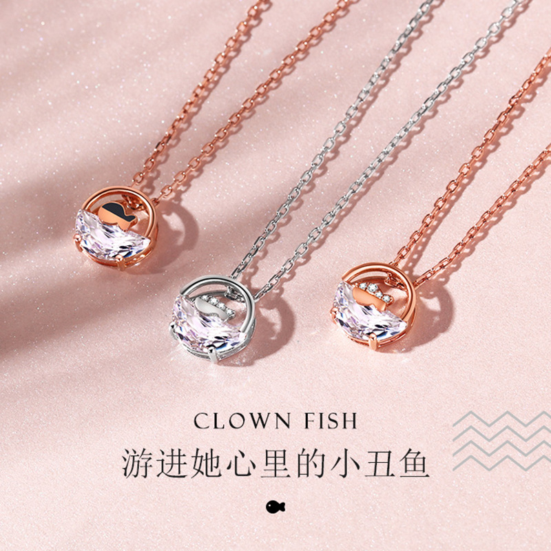 一汪清泉鱼项链纯银锁骨链新款女潮网红轻奢小众创意设计感礼物