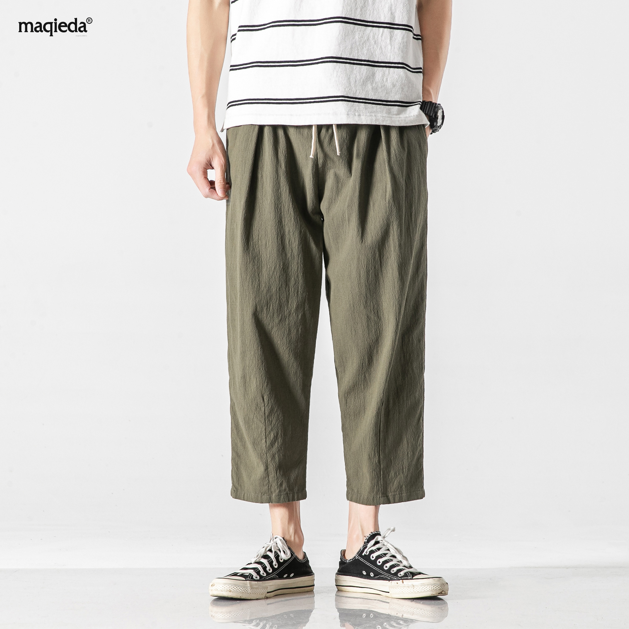 马切达夏季男裤修身直筒休闲男士九分裤薄款男生纯棉百搭裤子潮牌