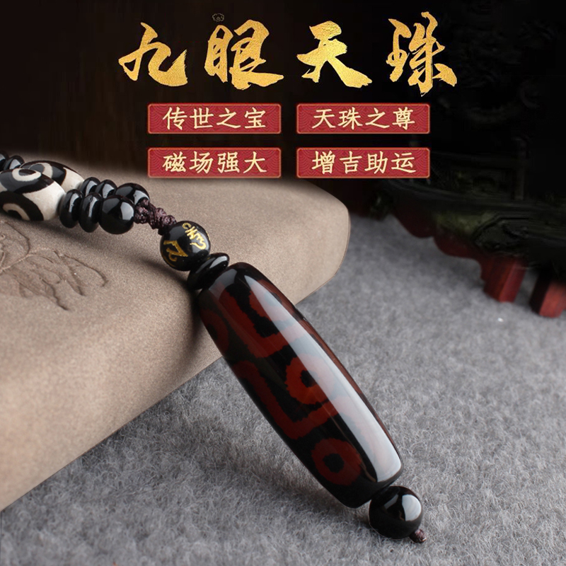 藏式九眼天珠男玛瑙吊坠毛衣链