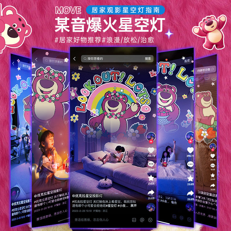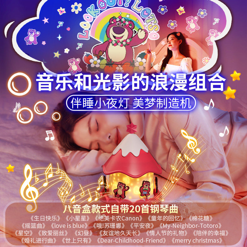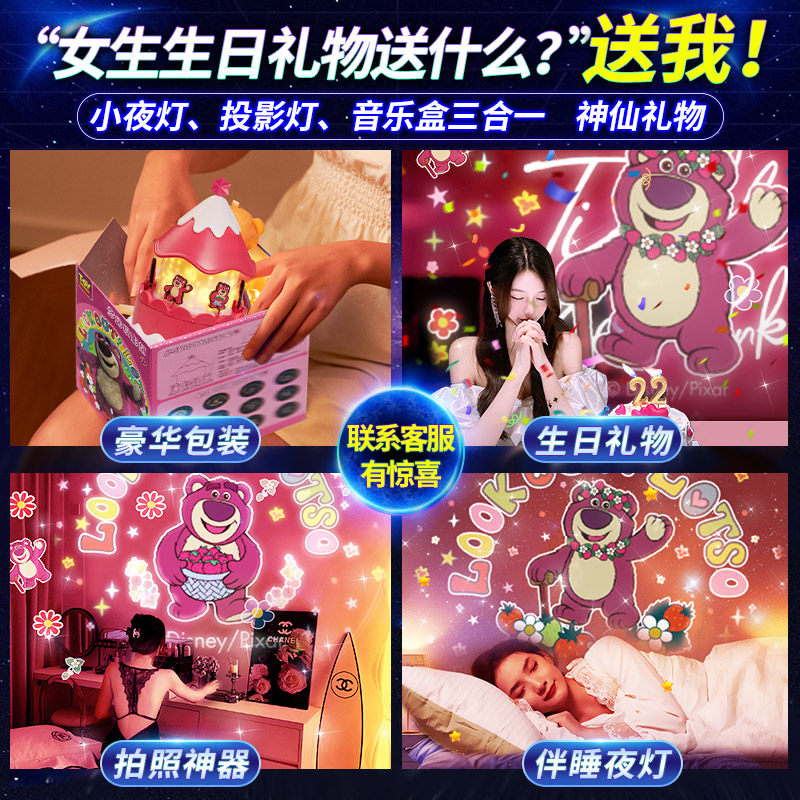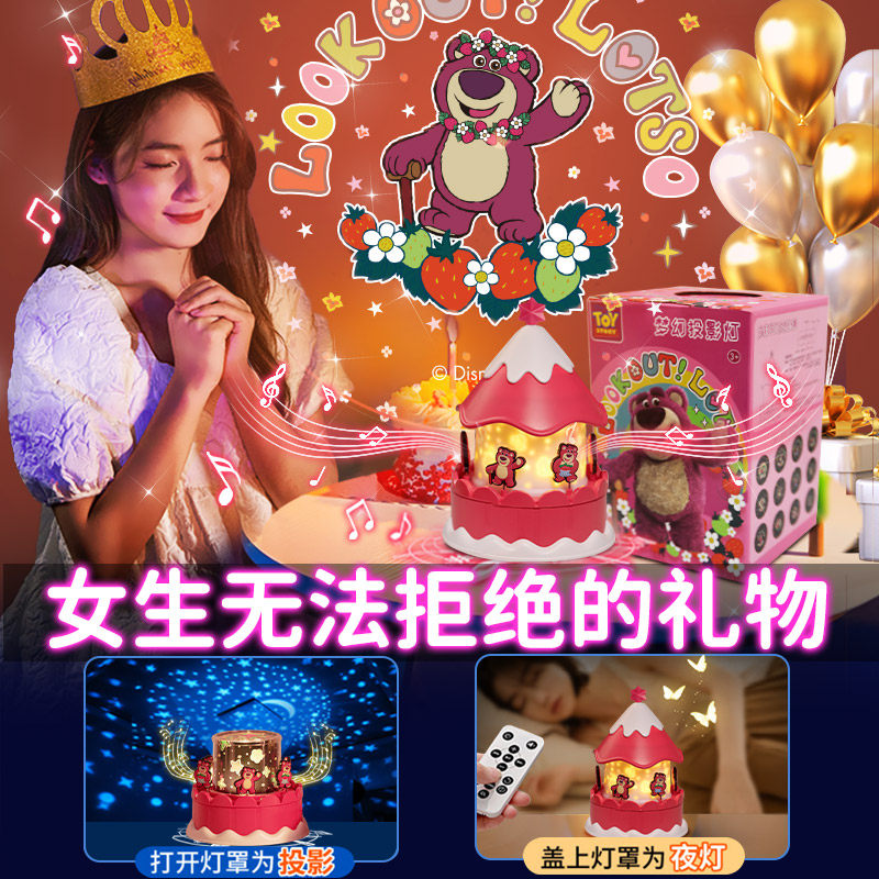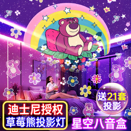 草莓熊星空灯投影仪满天星星光儿童女孩房间卧室顶床头睡眠小夜灯