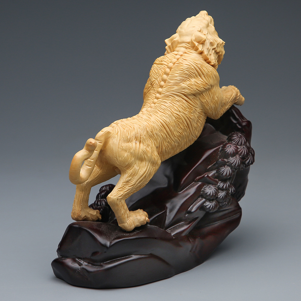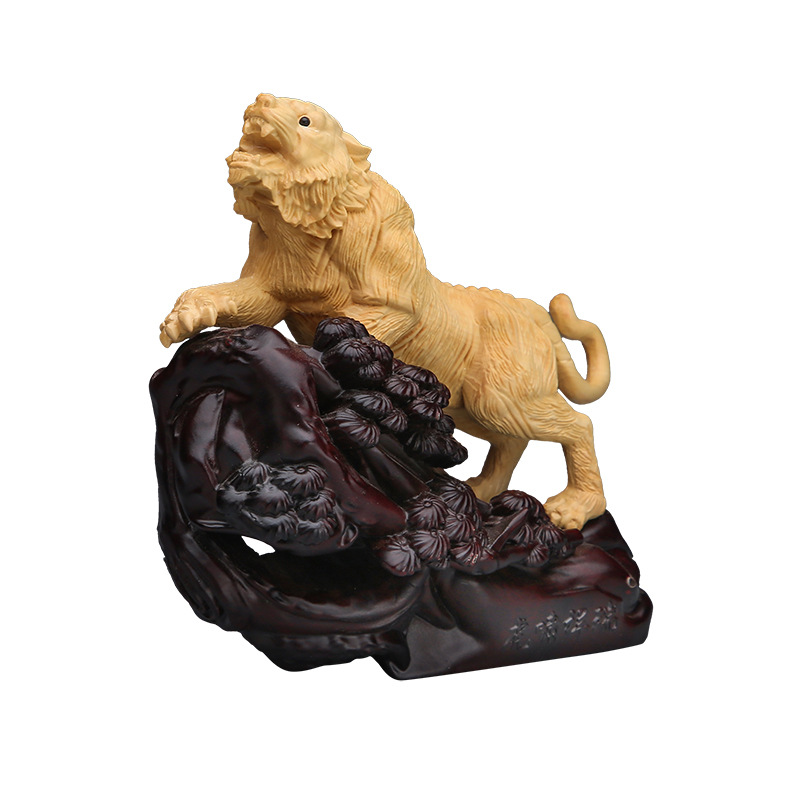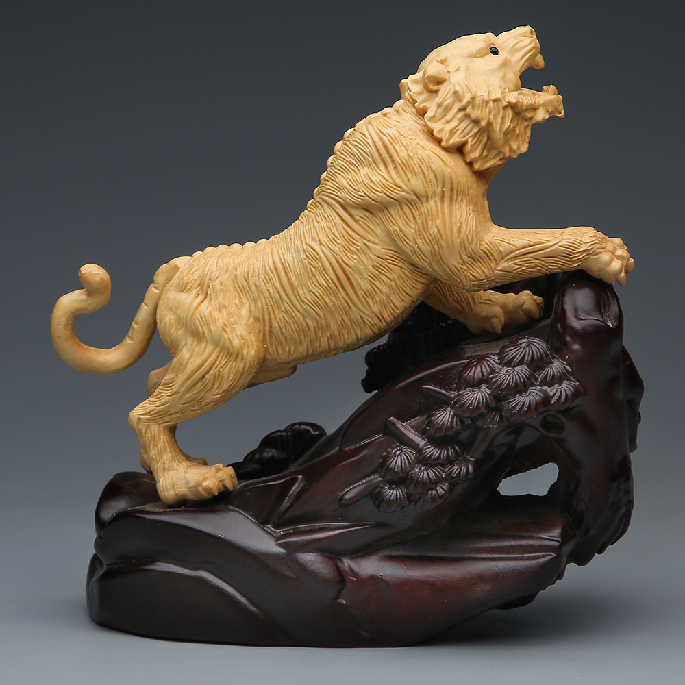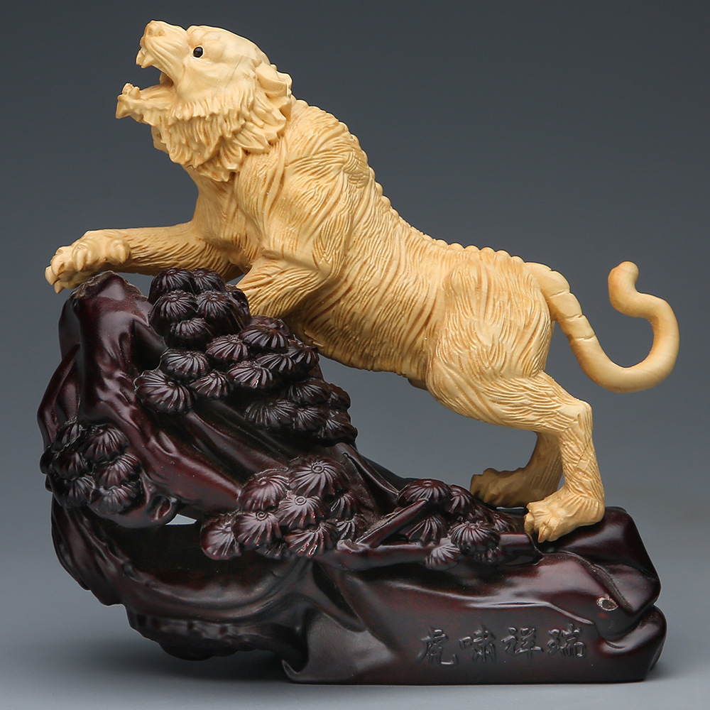 黄杨木雕老虎摆件十二生肖虎啸祥瑞实木雕刻家居办公装饰工艺礼品