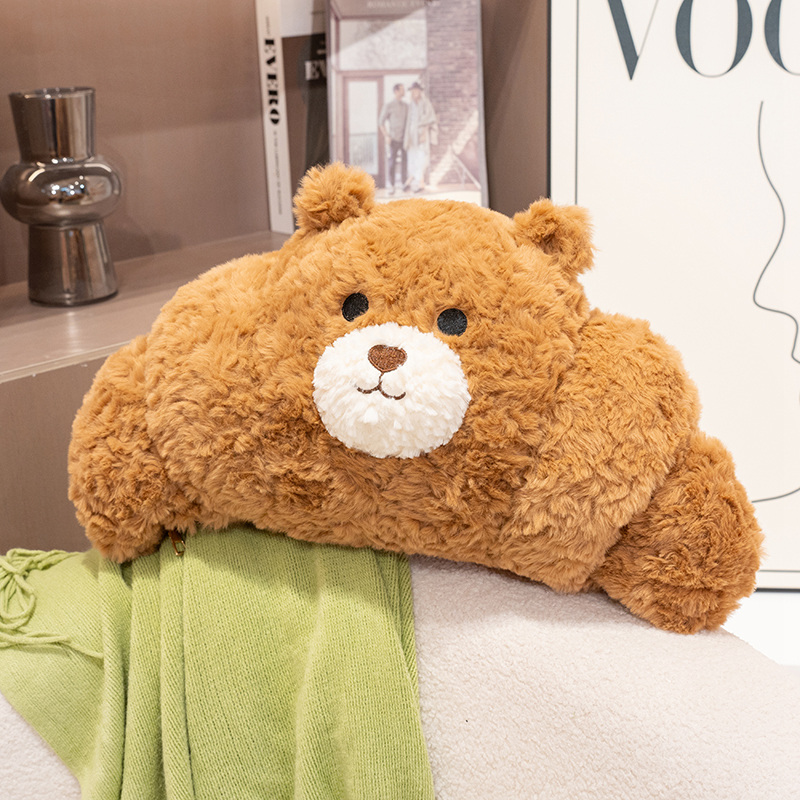 可爱小熊牛角包抱枕毛绒玩具椅子久坐护腰靠枕客厅沙发摆件榻榻米