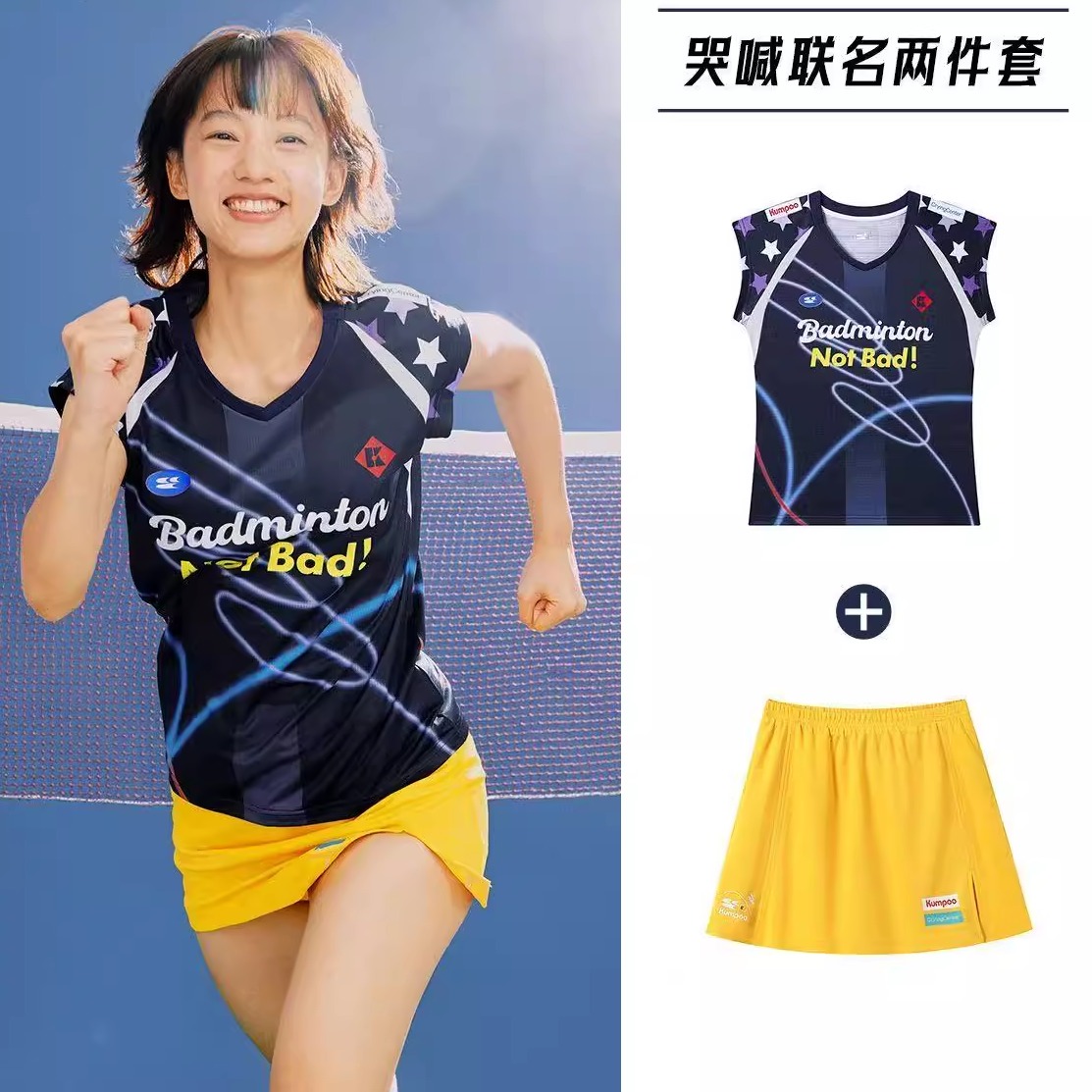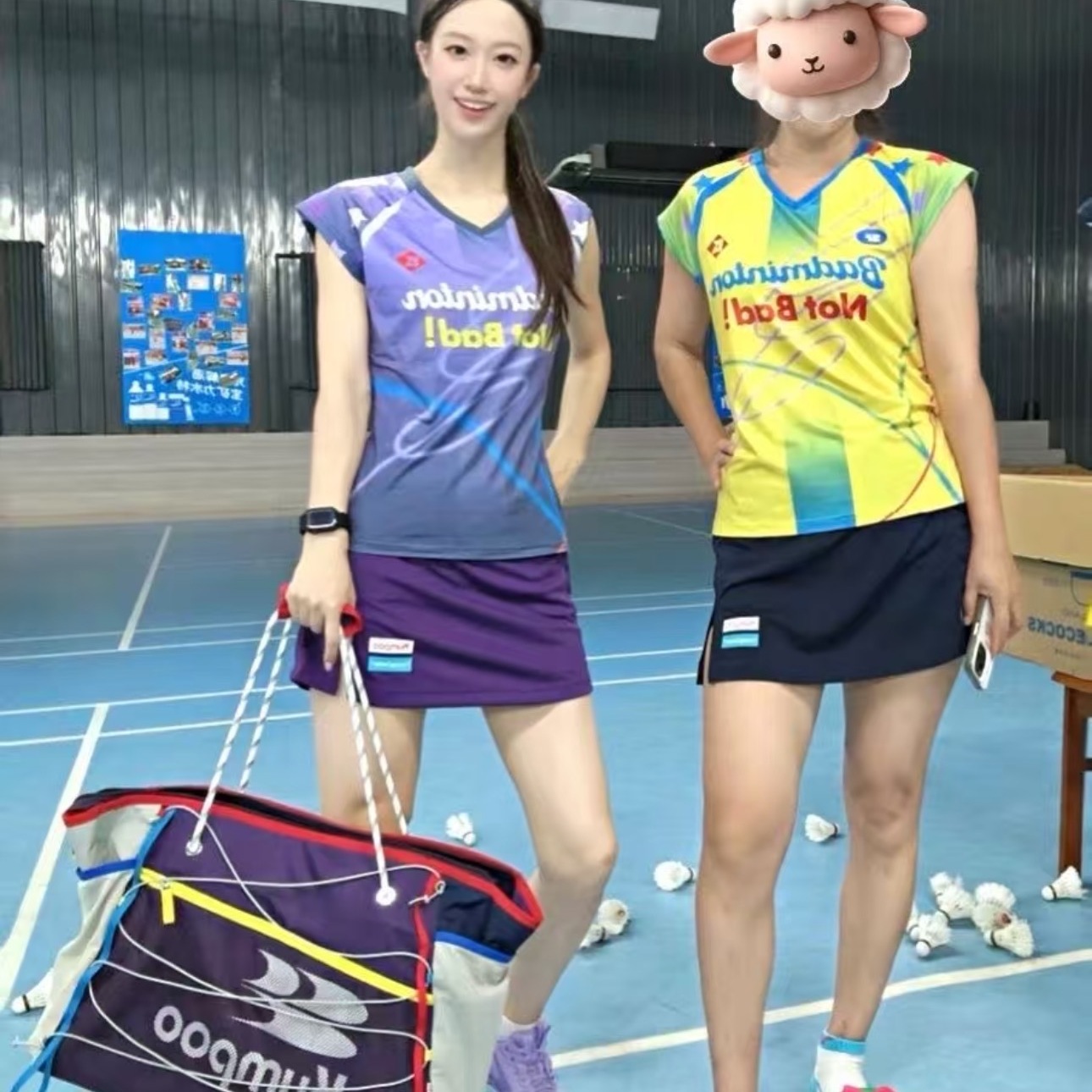 2025女高显白小飞袖羽毛球服短袖训练上衣夏男网孔透气冰丝比赛服